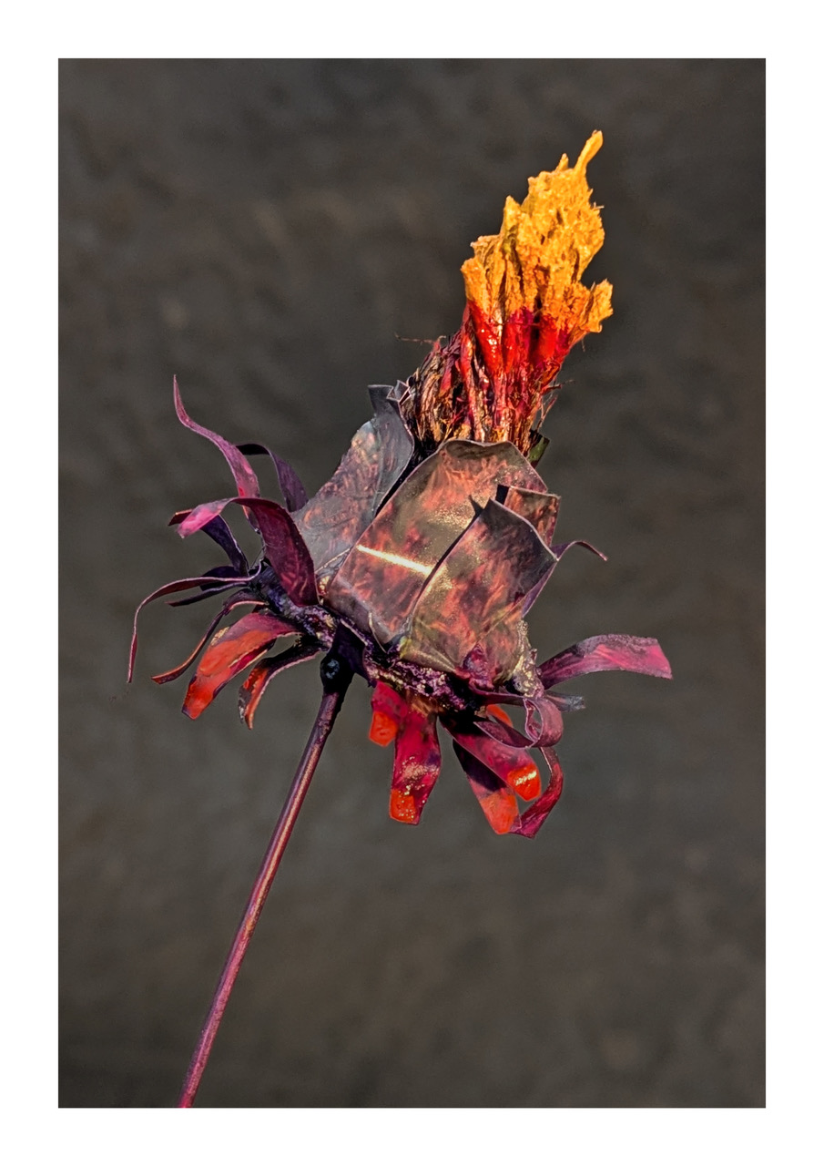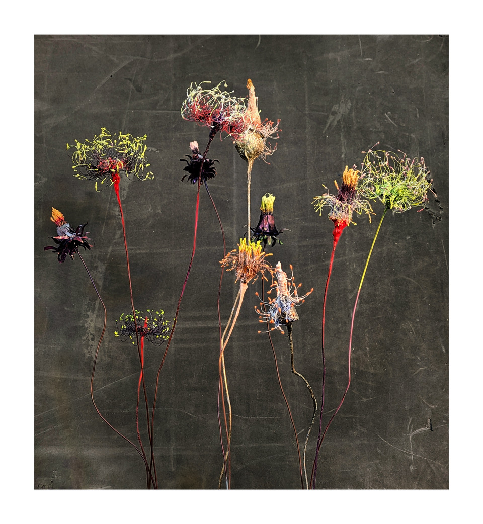 Nati come elementi delle sculture Pioniere – figure femminili chine a osservare un fiore spuntato ai loro piedi – i fiori Indispensabili evolvono in opere autonome. Lo studio sulle erbe pioniere, specie resilienti che portano vita in terreni ostili promuovendo rigenerazione ambientale, ha spinto l’artista a sperimentare modellazione e coloritura, liberando questi fiori vibranti dalla loro originaria integrazione. Una tecnica personale trasforma la rigidità della rete metallica in forme morbide, mobili e uniche.