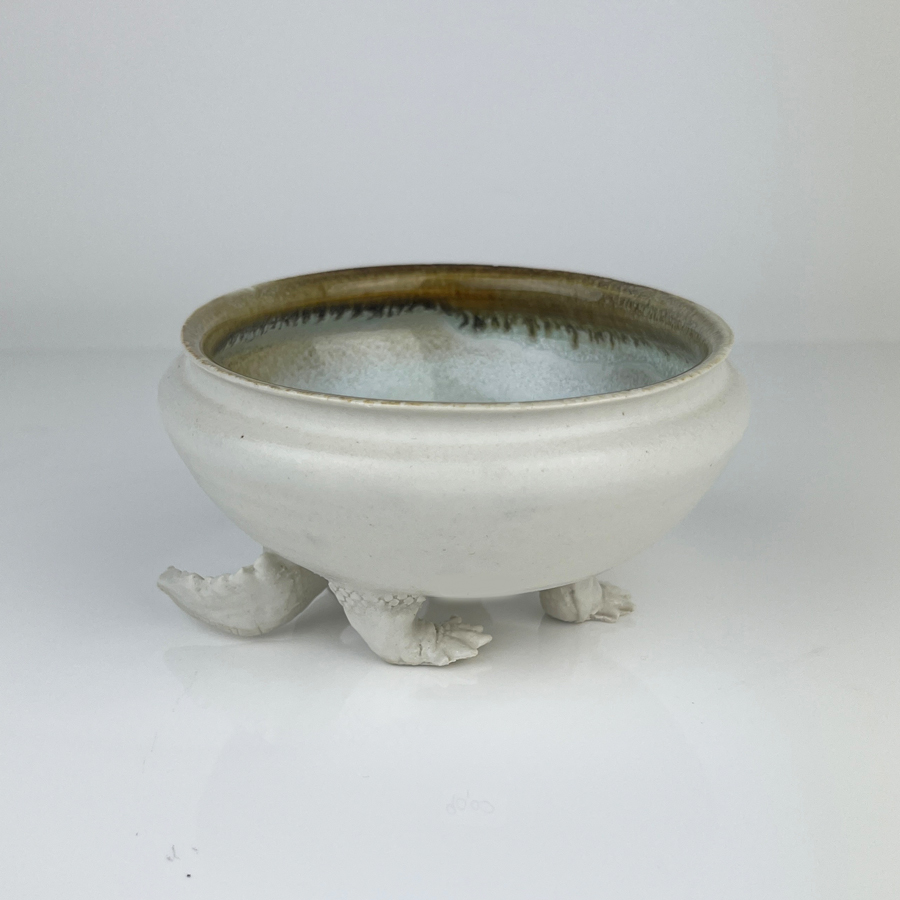Glazed stoneware bowl, handmade by Amaaro, with shapes inspired by imaginary creatures from prehistory.