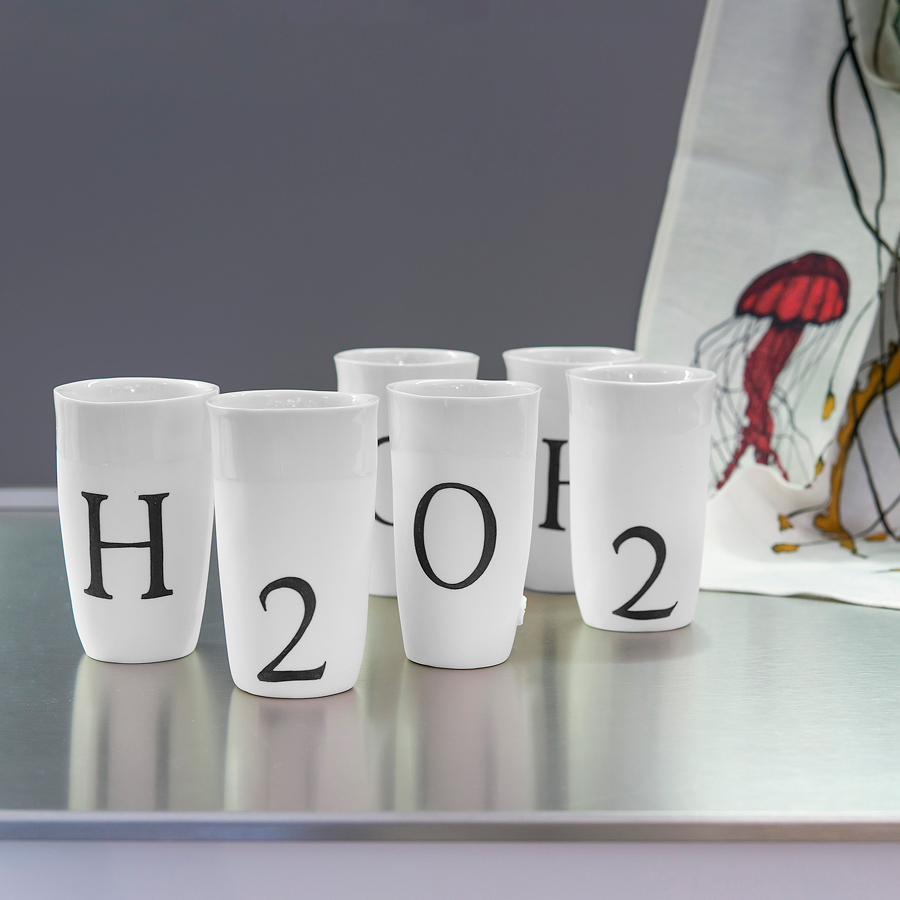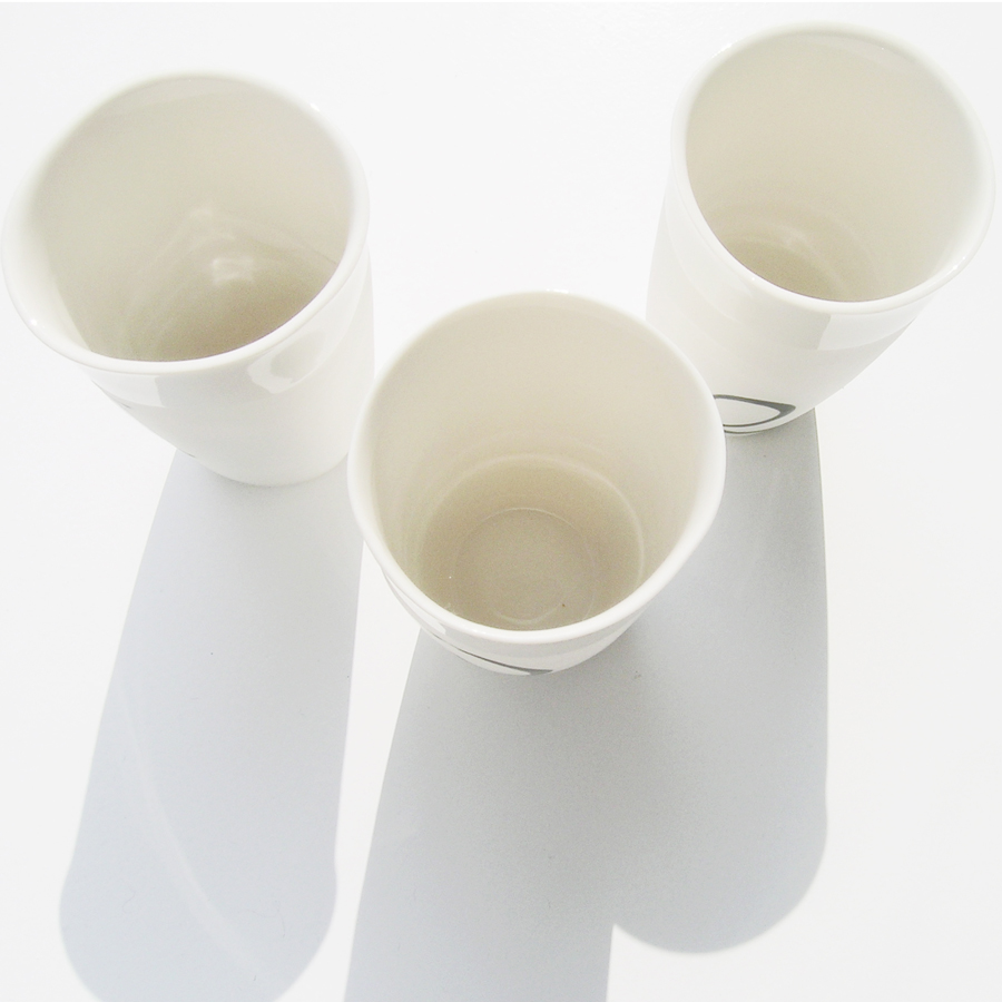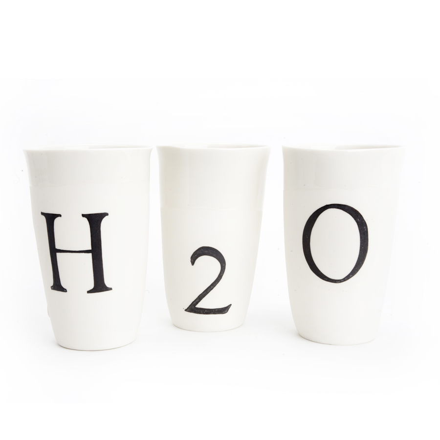 Set of 3 H2O glasses, made in Limoges porcelain,