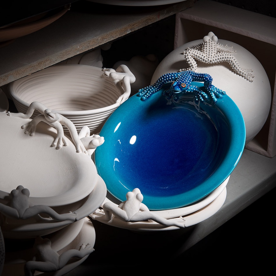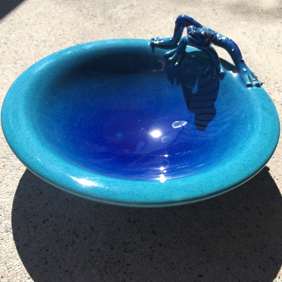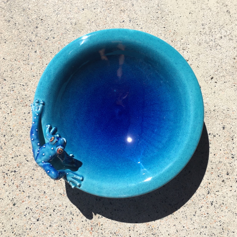 bowl: d 21 cm, h 5 cm frog 12 x 5 cm, h 3 cm