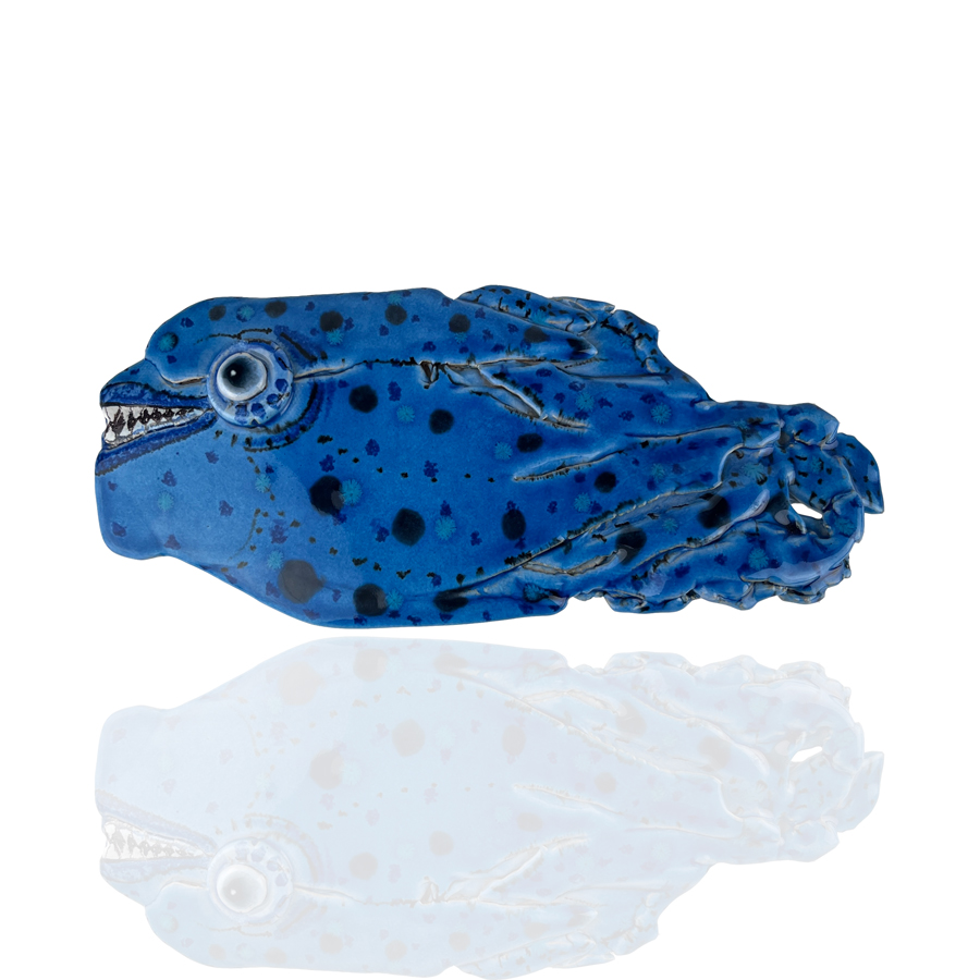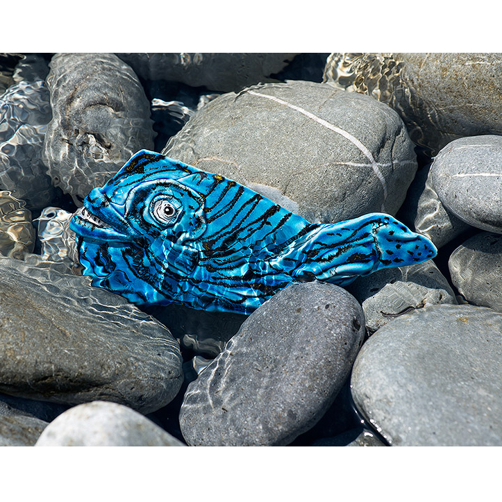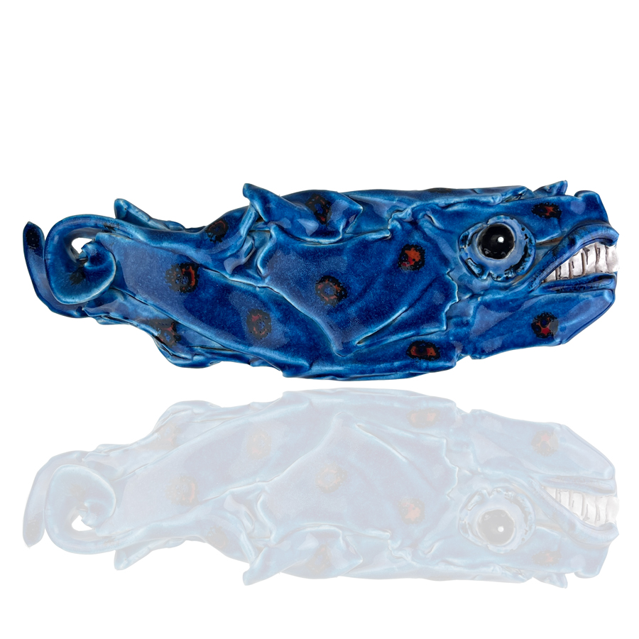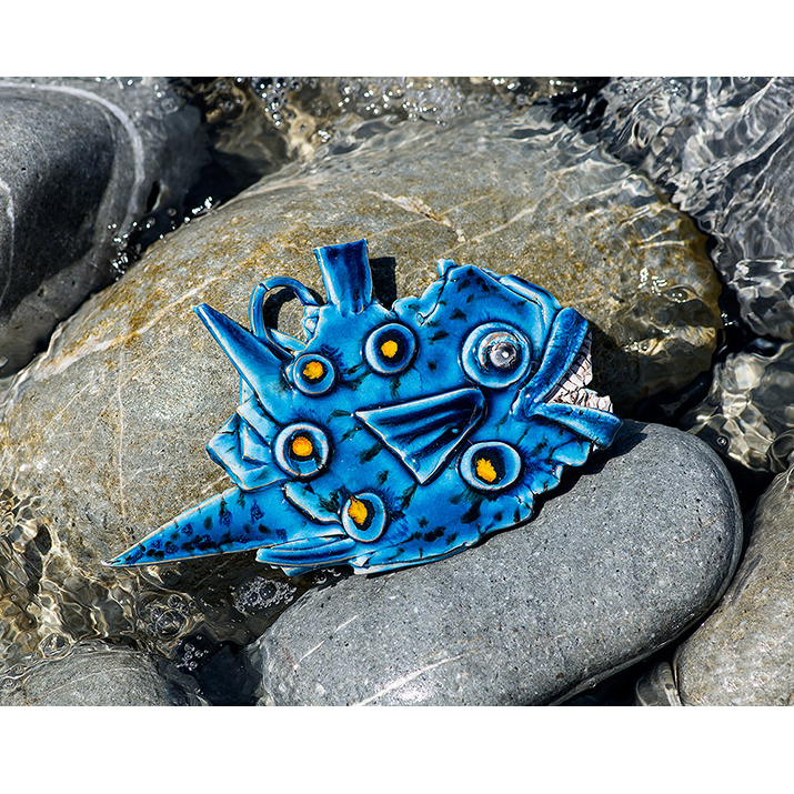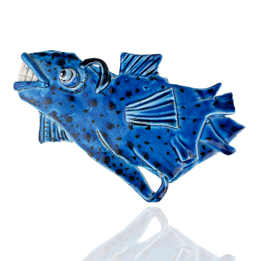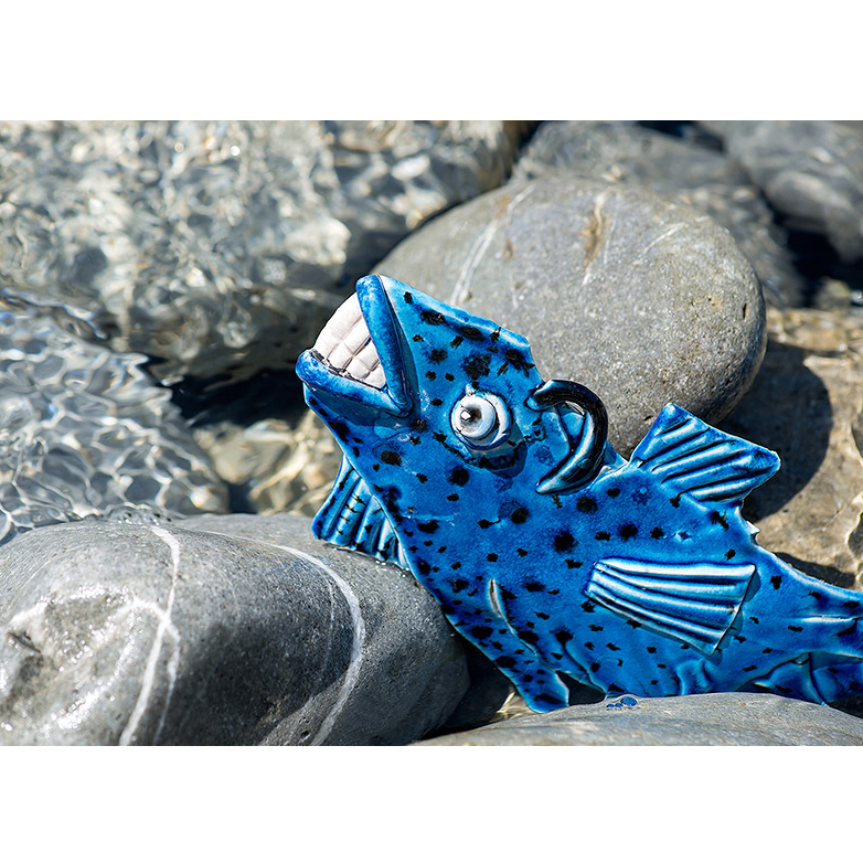 Glazed ceramic slab fish, to be hung on the wall simply using a nail. Unique piece made entirely by hand in Mirta Morigi’s workshop in Faenza