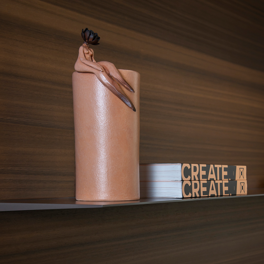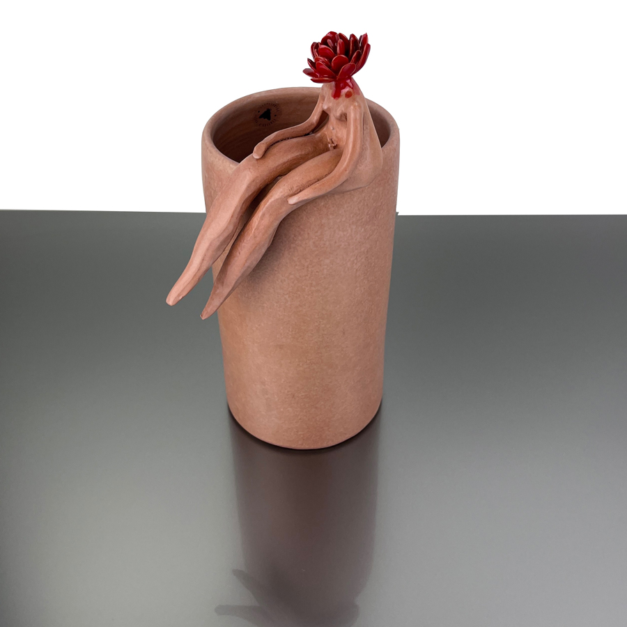 The satin enamel reveals the natural color of the red earth with which the pieces are made entirely by hand. The fairies have colored elements with enamel or oxides.