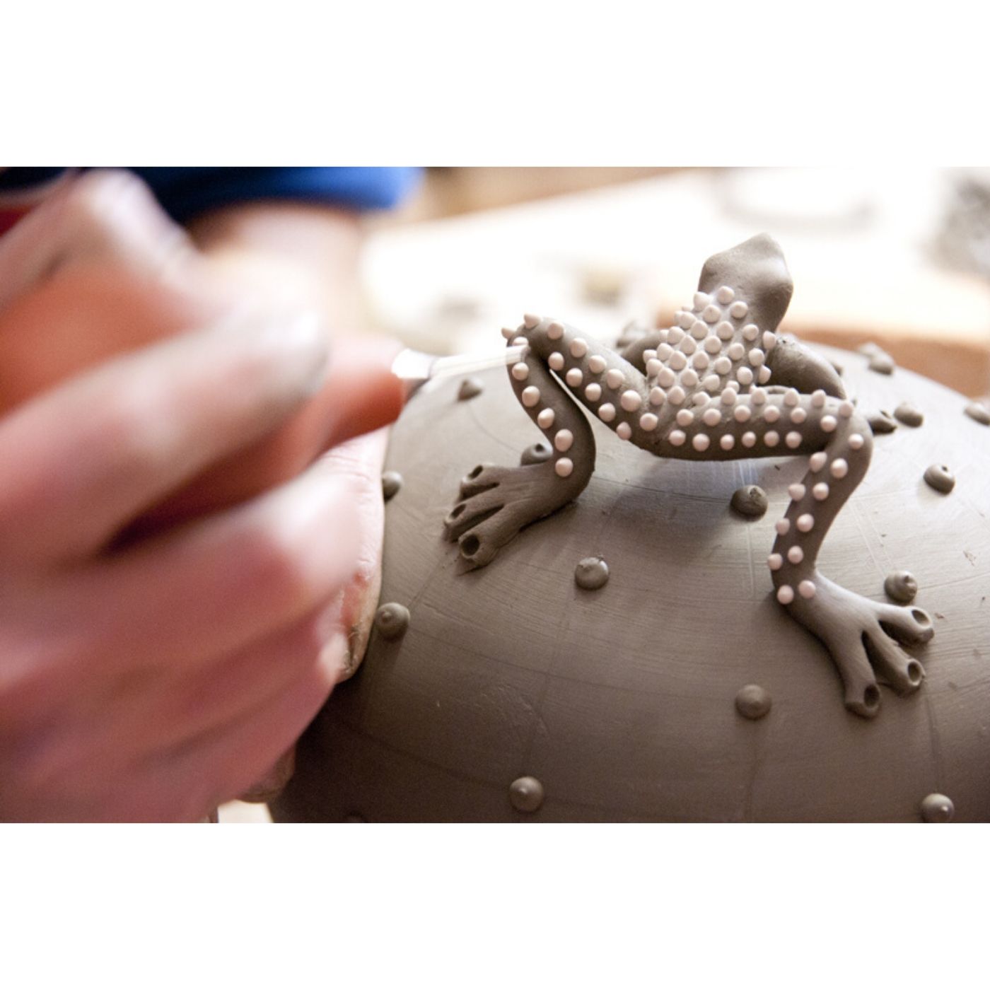 Each piece is made and modeled entirely by hand in Mirta Morigi’s workshop in Faenza.