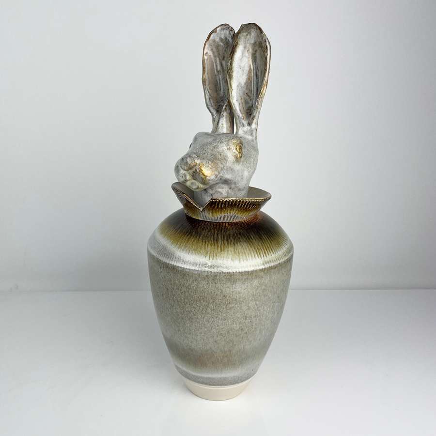 a vase “body” and an animal head “cap”.
