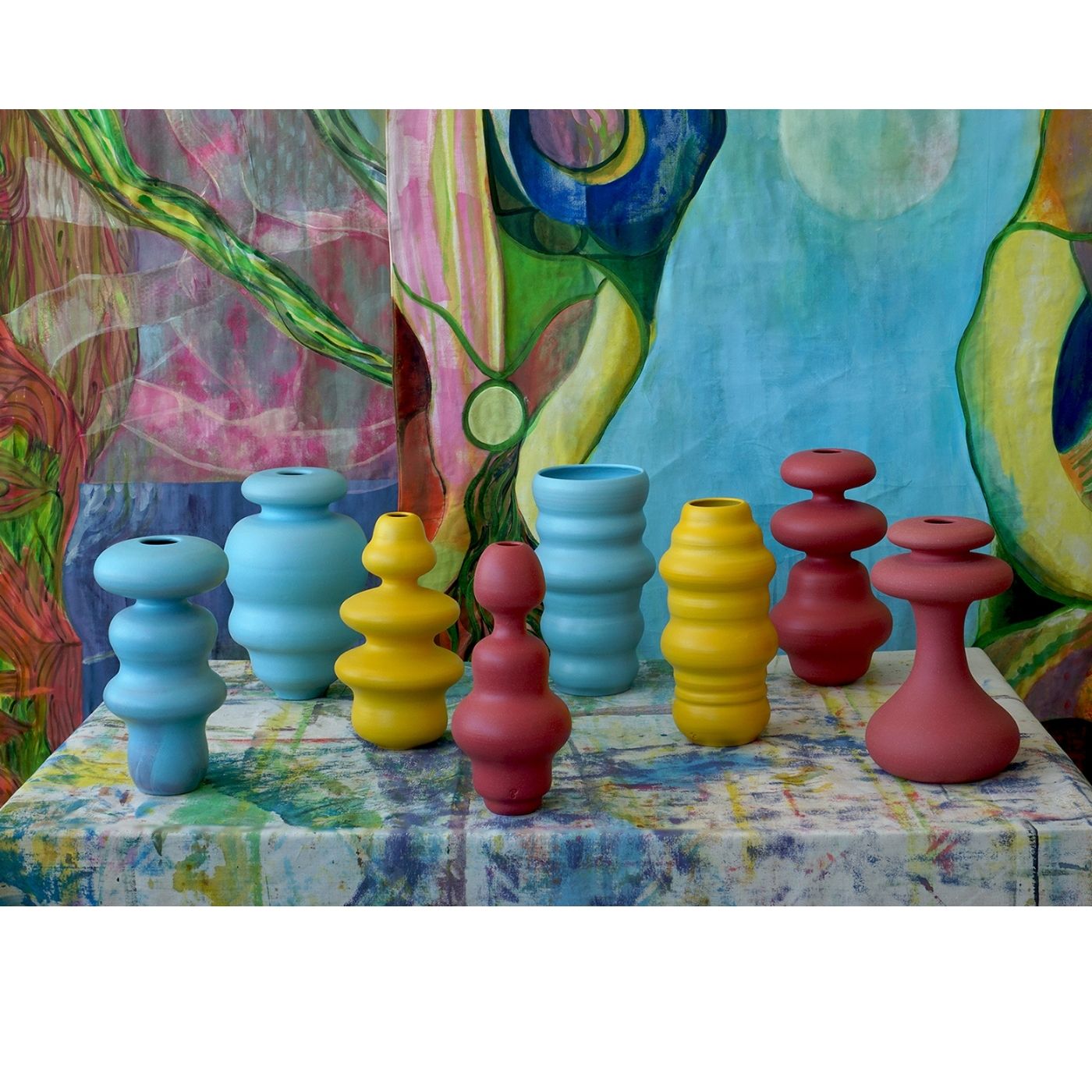 Thrown unique pieces with mat colored surfaces. The Collection boast sinuous silhouettes, interplaies of forms and volumes drawing inspiration from chrysalis in her transition from caterpillar to butterfly. Chrisalys is a combination of traditional techniques and contemporary taste.
