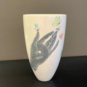 Crafted on a wheel and entirely hand-decorated, the new ceramic vases from Elisabetta D’Arienzo’s (Little Freak) “Graffiti” collection embody the unpredictability of the mark and the narrative power of the image. Each surface is a page waiting to be written, punctuated by esoteric symbols, imaginary figures, and minimal details that, like fragments of a story, recompose themselves in an ever-changing balance.