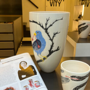 Crafted on a wheel and entirely hand-decorated, the new ceramic vases from Elisabetta D’Arienzo’s (Little Freak) “Graffiti” collection embody the unpredictability of the mark and the narrative power of the image. Each surface is a page waiting to be written, punctuated by esoteric symbols, imaginary figures, and subtle details that, like fragments of a story, recompose themselves in an ever-changing balance.