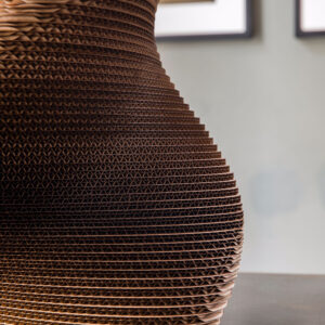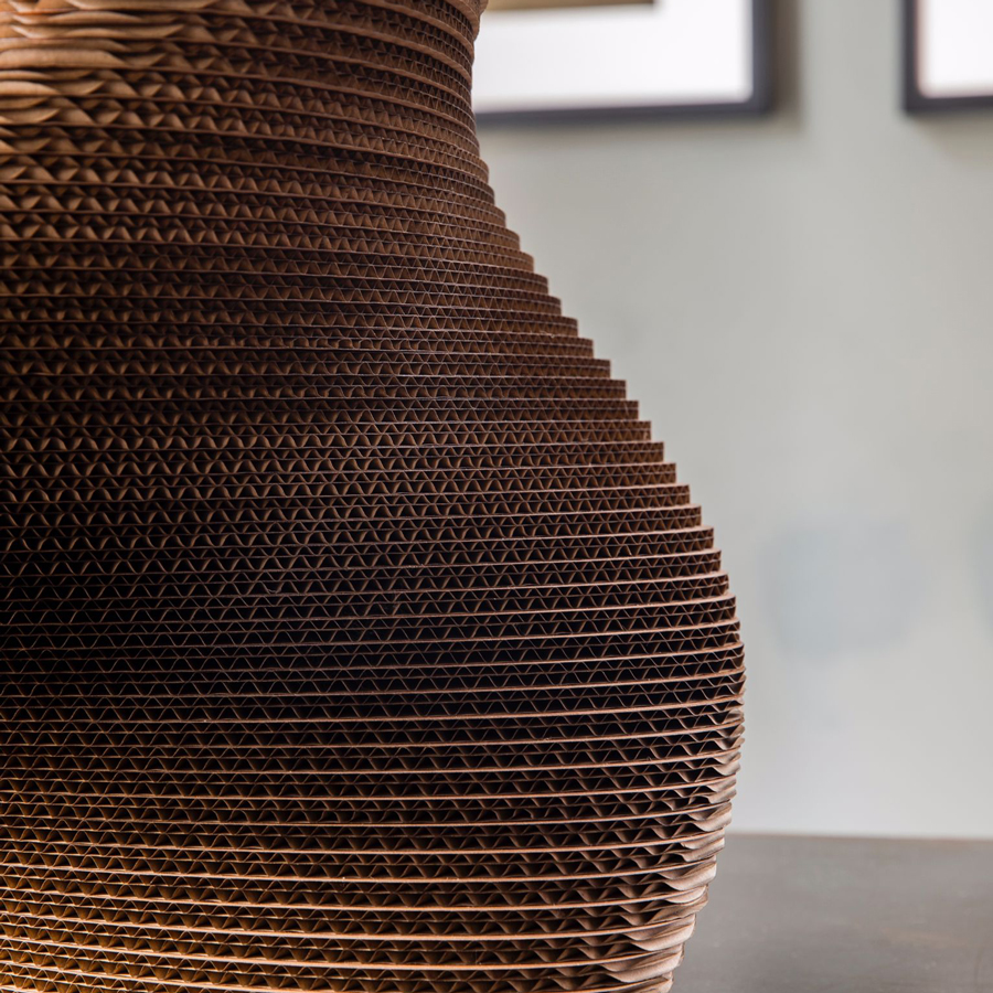 Cardboard is a humble material, used to package and protect other objects; this project makes it the protagonist itself. The cardboard is assembled by hand, glued, and treated.