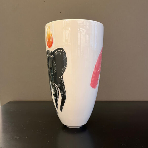 The decorations arise from absolute freedom, where instinct guides the hand and painting becomes a spontaneous, almost automatic gesture. Each vase is unique: an object that embodies the lightness of play and the depth of the symbol.