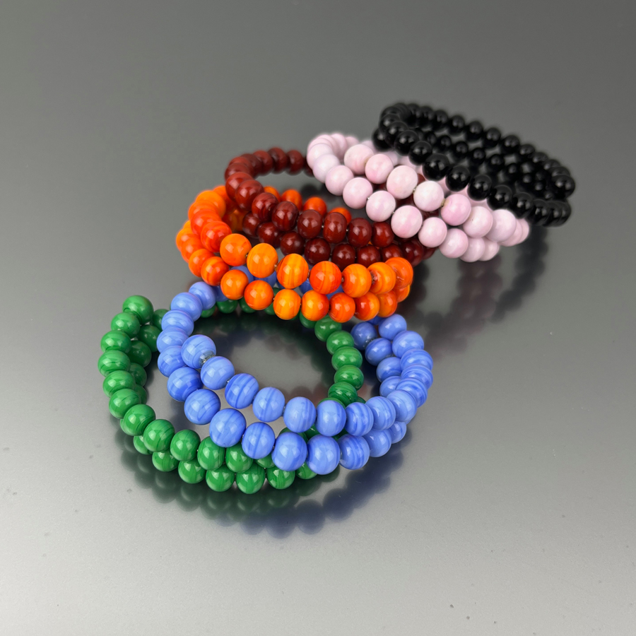 The bracelets are mounted on spring steel wires: there are no clasps and they are easy to wear, offering comfort and practicality.