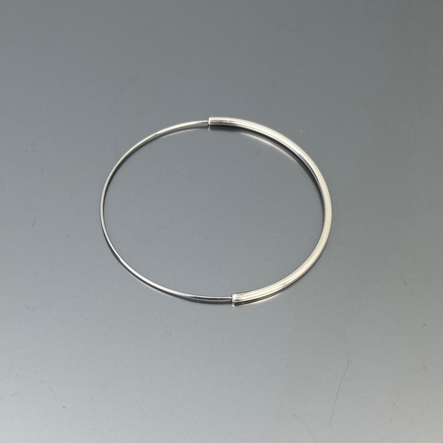 Rigid bracelet in 925 silver and steel, characterized by a minimal and elegant design. Artisanal workmanship