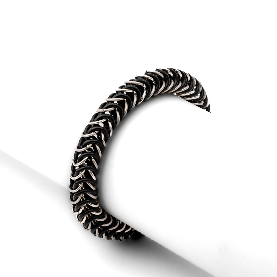 The rings are hand-woven; the result is a resistant mesh that does not lose elasticity over time, soft and comfortable.