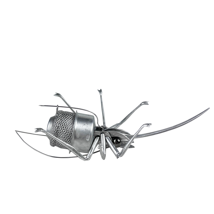 Sculpture brooch made entirely by hand by assembling commonly used aluminum objects without welding.Steel needle