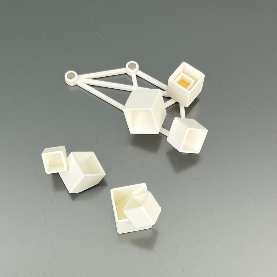 Made with 3D printing in PLA – a bioplastic derived from plant materials – and subsequent manual processing.