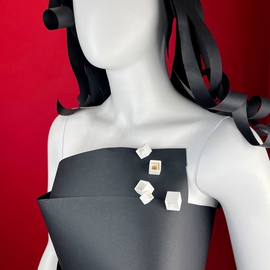 Light geometric shapes that attach to fabrics thanks to an invisible magnetic system.