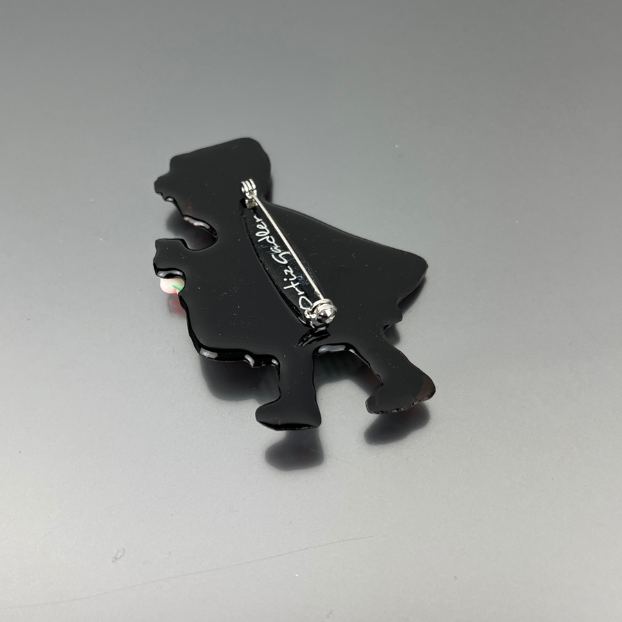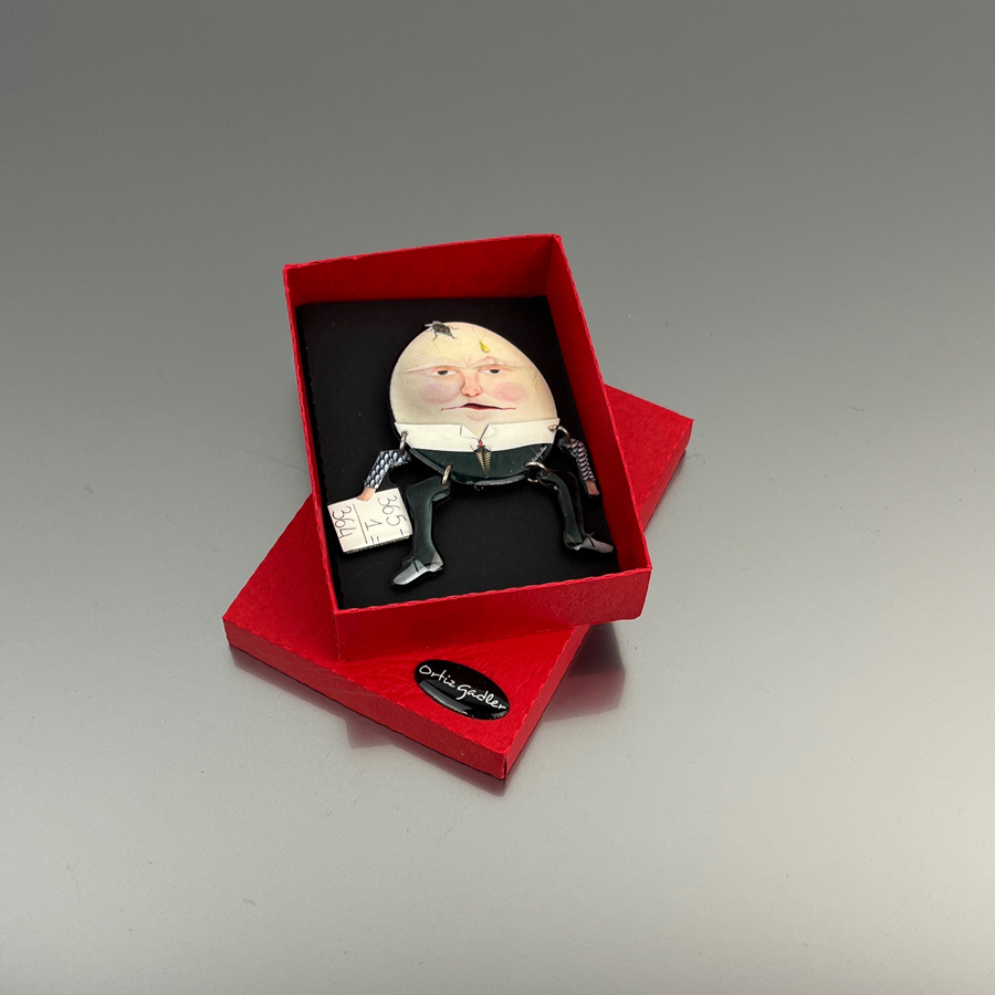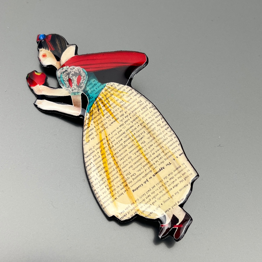 Brooches made of paper from the print of an original collage and subsequently covered in resin.