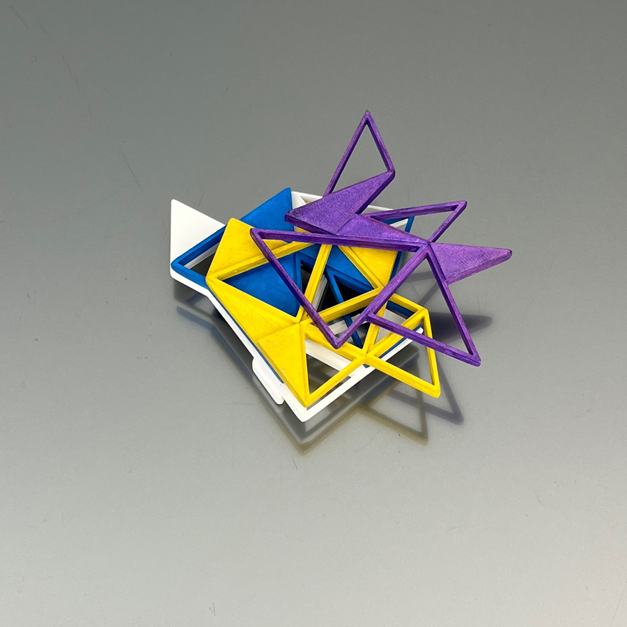 The brooch is composed of geometric elements with magnets so they are all superimposable.