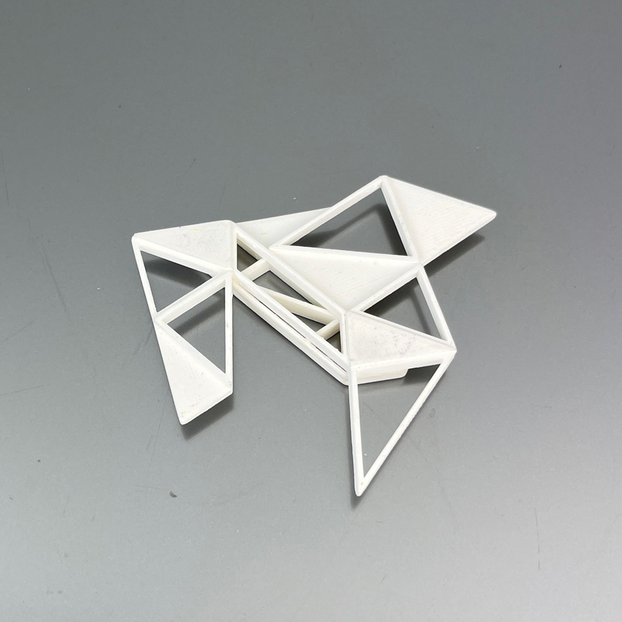 Made with 3D printing with PLA – a bioplastic derived from plant materials – and subsequent manual processing, they create elements that enhance the chromatic, luminous and tactile characteristics of the material.