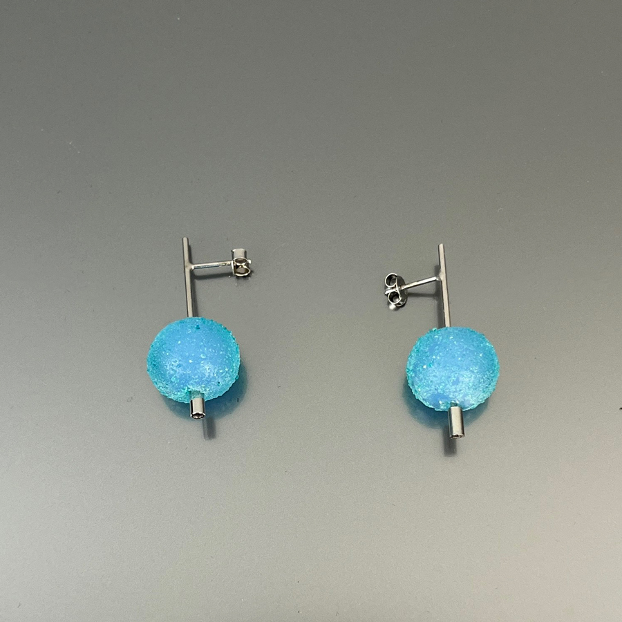 Silver earrings with an essential design. The colored glass beads are handmade with the lampwork glass technique typical of the island of Murano.