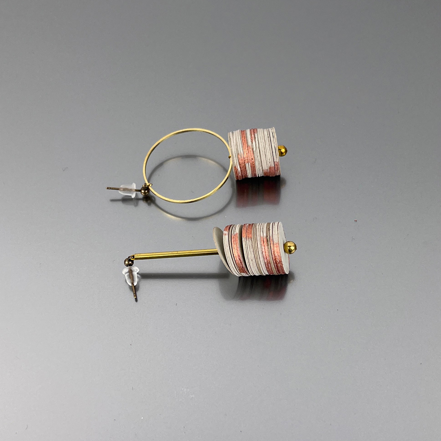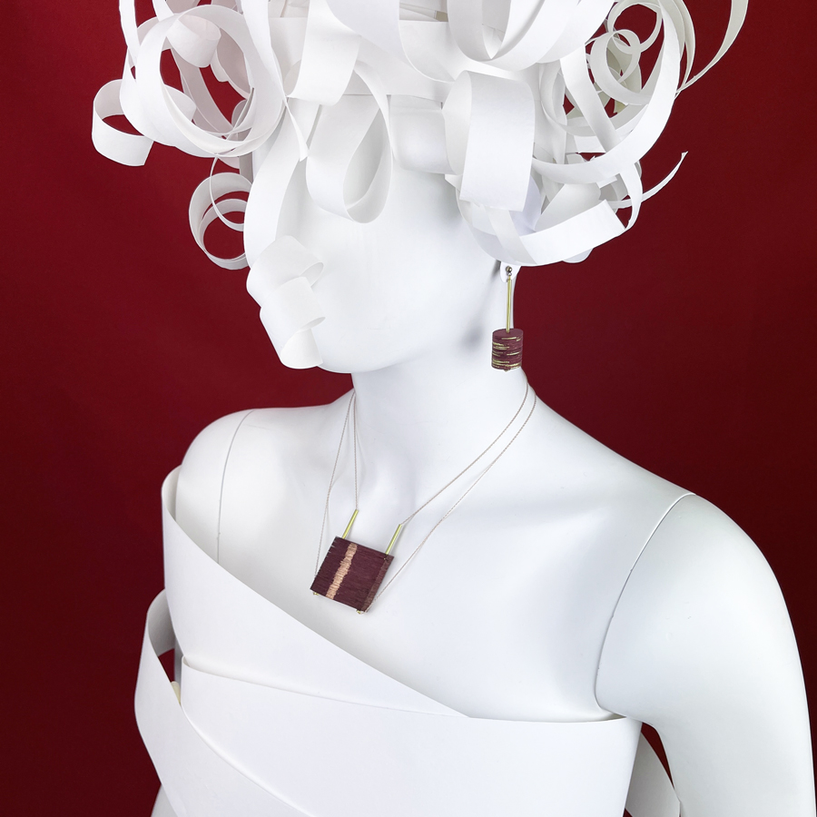 Over 10 years of folds and a passionate search for origami have led me towards a creative path by subtraction; passing from figurative subjects, to the abstract, up to neglecting the technique to get to the essence of the material: paper. Sō in Japanese means ‘layer’, the new creations play with the overlap, volume and shape of the paper. Hand painted with gold and copper pigments, the artifacts are designed to be worn in different ways. The intent is to interact with the jewel while maintaining a clean and minimal aesthetic line.