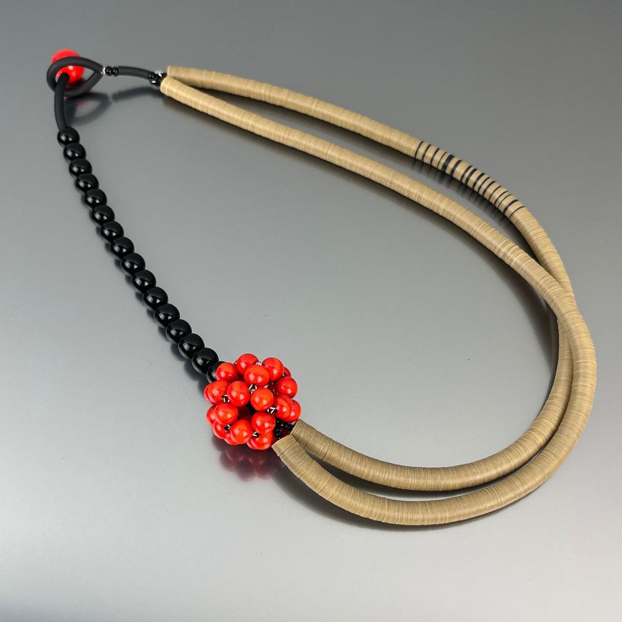 The colored glass beads are handmade with the lampwork glass technique typical of the island of Murano.