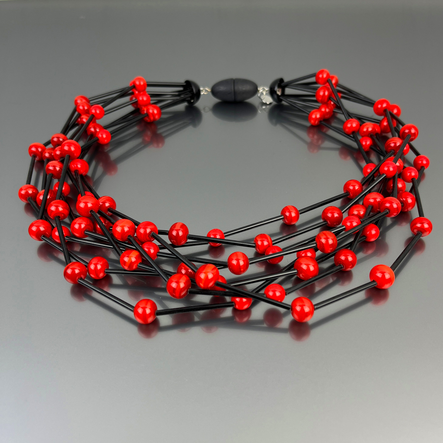 The colored glass beads are handmade with the lampwork glass technique typical of the island of Murano.