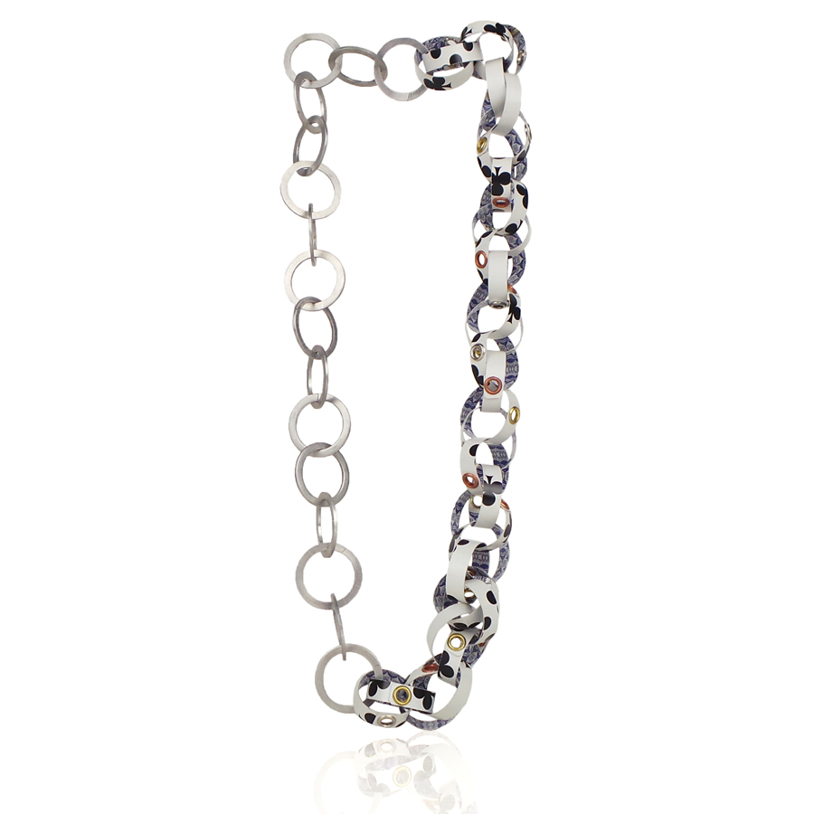 Necklace made with hand-cut and hand-crafted playing cards. A