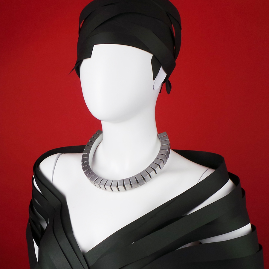 Therefore very light aluminum necklace, handmade by modifying common objects.