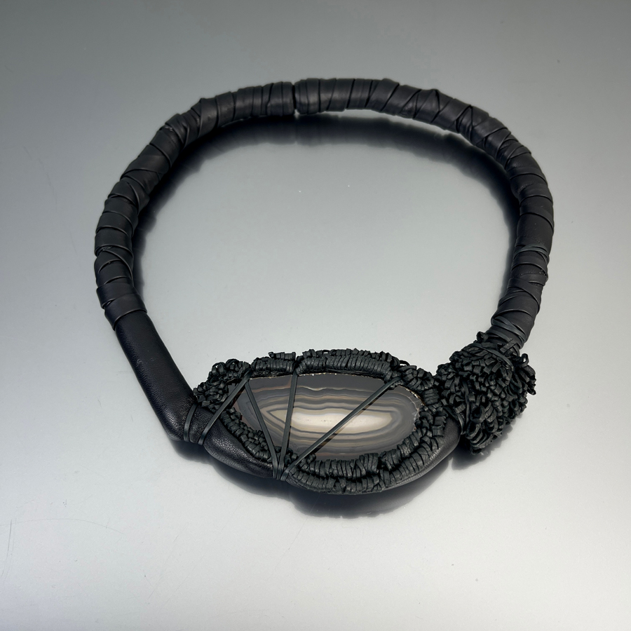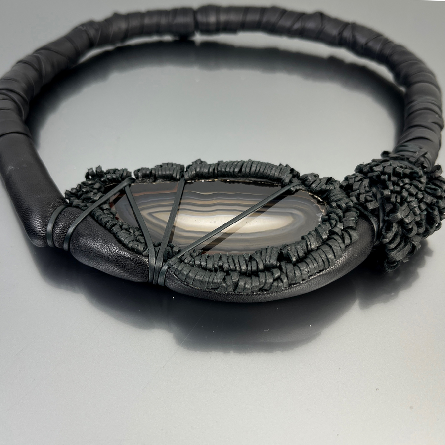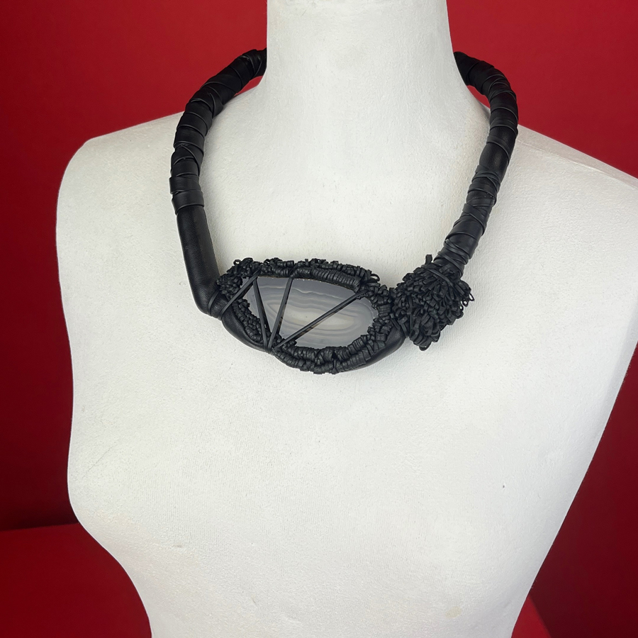 Leather jewel with Agate entirely handmade.