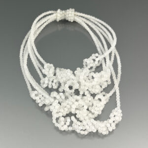 Necklace with glass beads, the “hedgehog” movement is given by a steel cable, the necklace is soft and elastic,