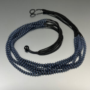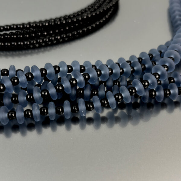 Necklace Murano glass, 5 strands, with shiny and satin elements. Rubber and glass closure