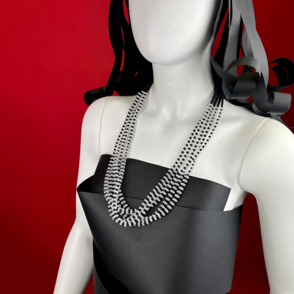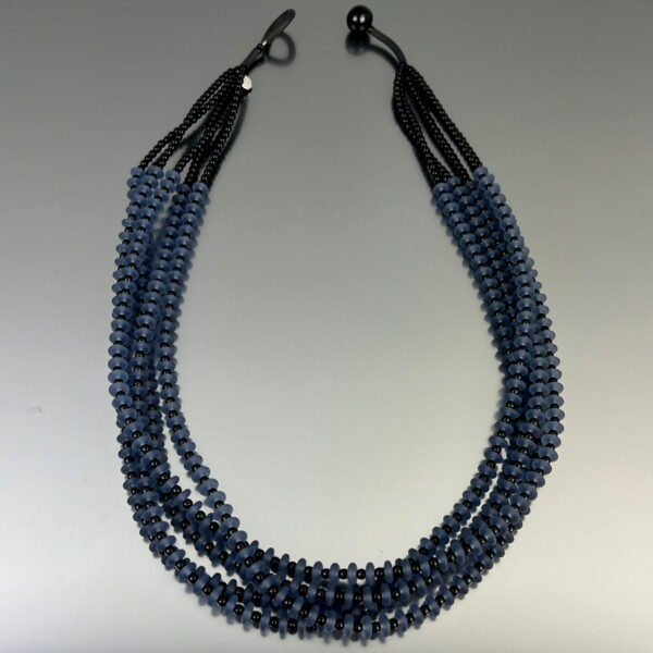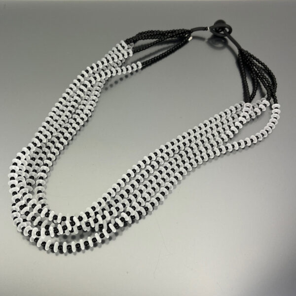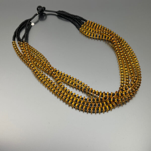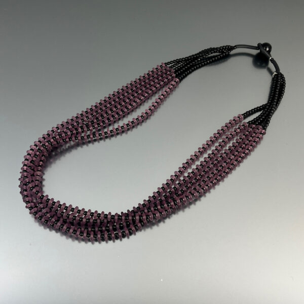 Necklace Murano glass, 5 strands, with shiny and satin elements. Rubber and glass closure