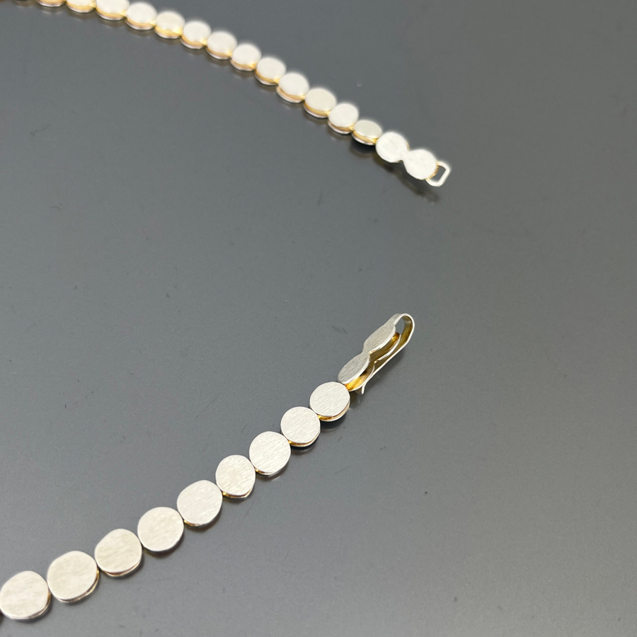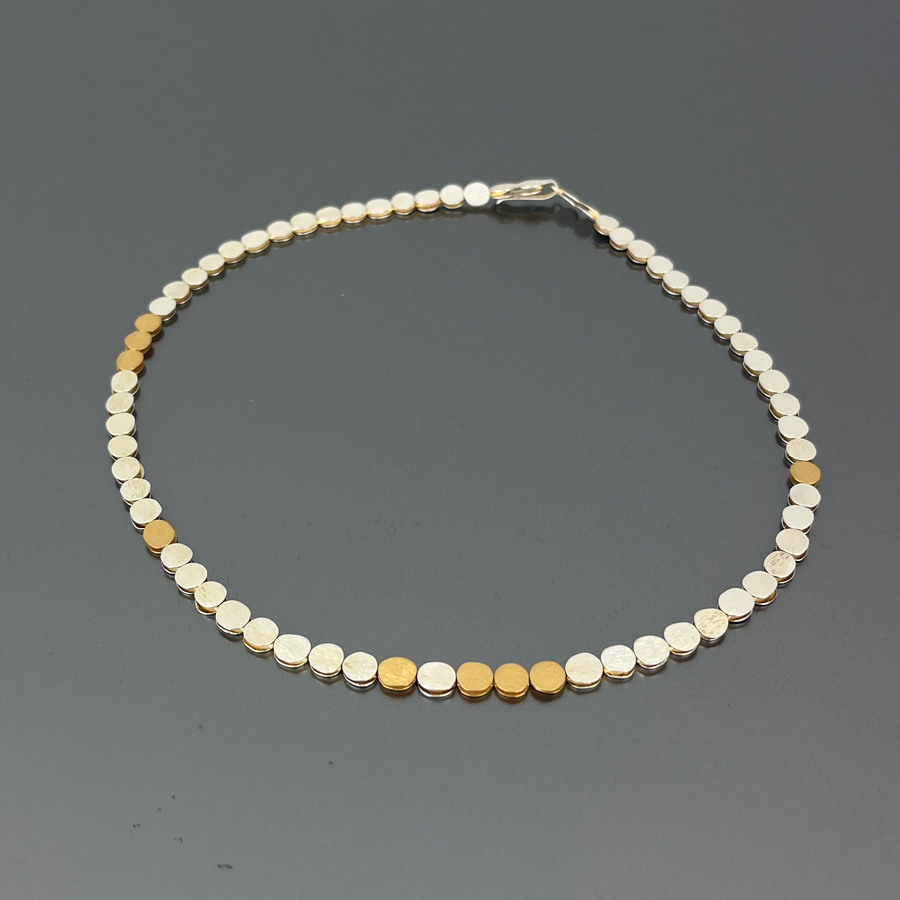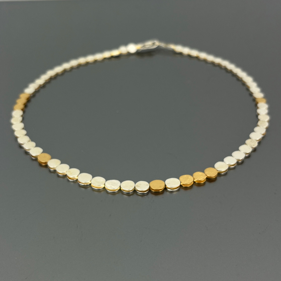 The Pebbles necklace is a minimal and extremely elegant jewel composed of small pebbles in silver and gold-plated silver. Perfect for those who love refinement in the details.