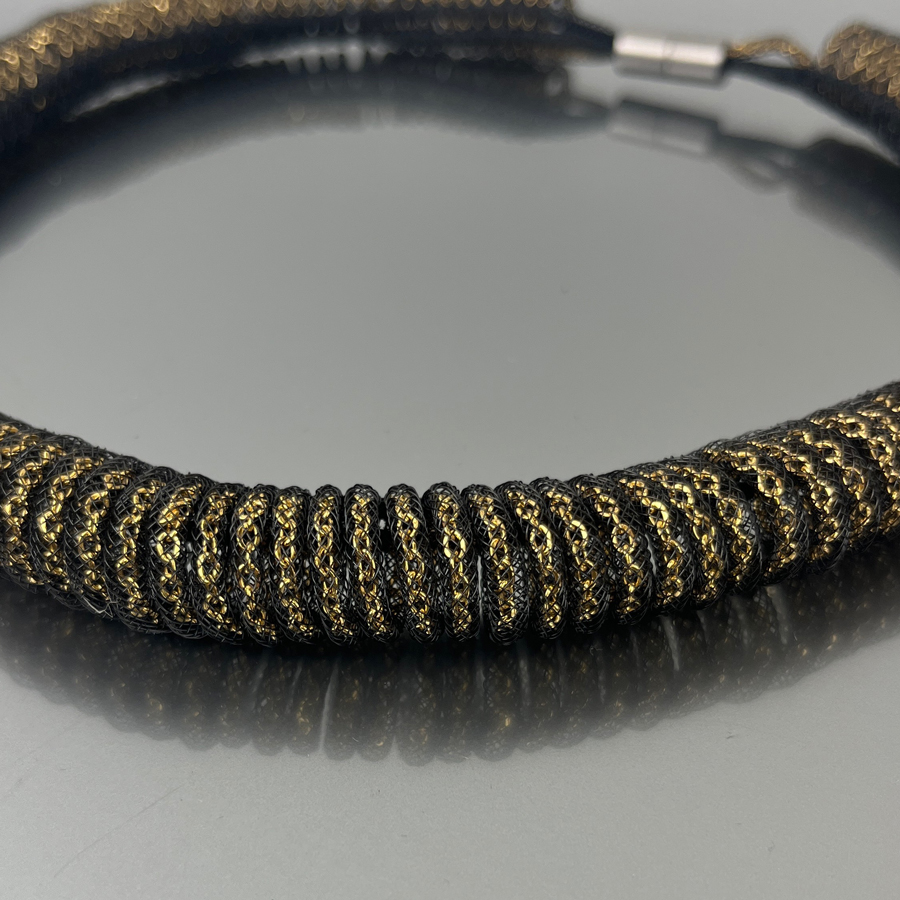 Nylon mesh necklace with a gold or silver steel chain inside,