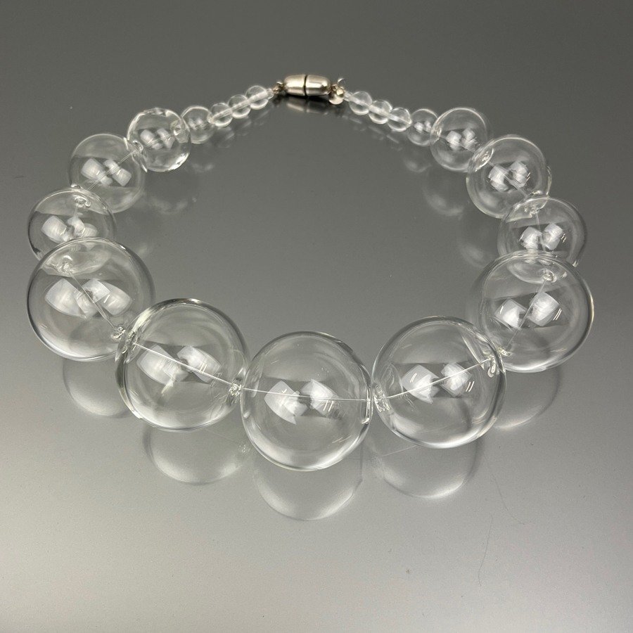 the necklace is made up of blown glass bubbles of various sizes and glass beads.
