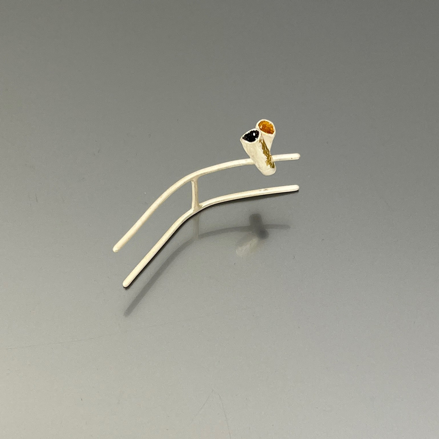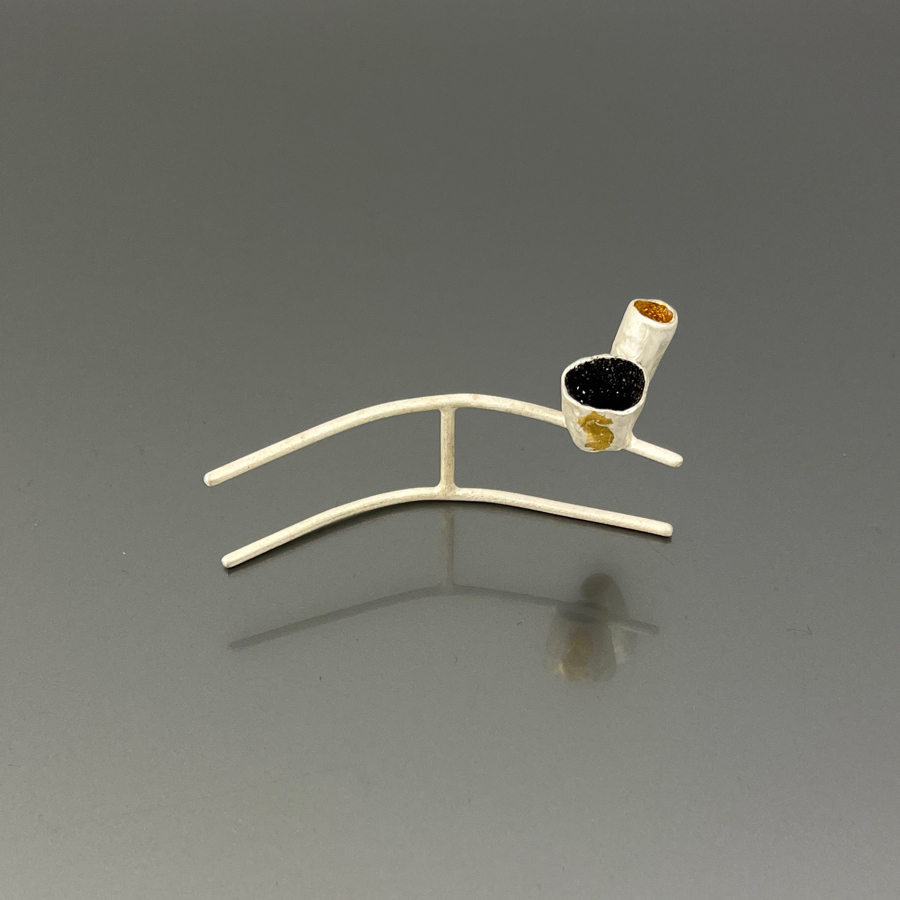 925 silver, pickling, keum-boo with 24kt gold, natural sands rich in hematite and pyrite.