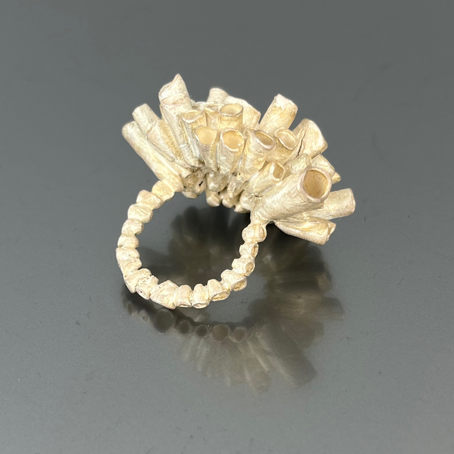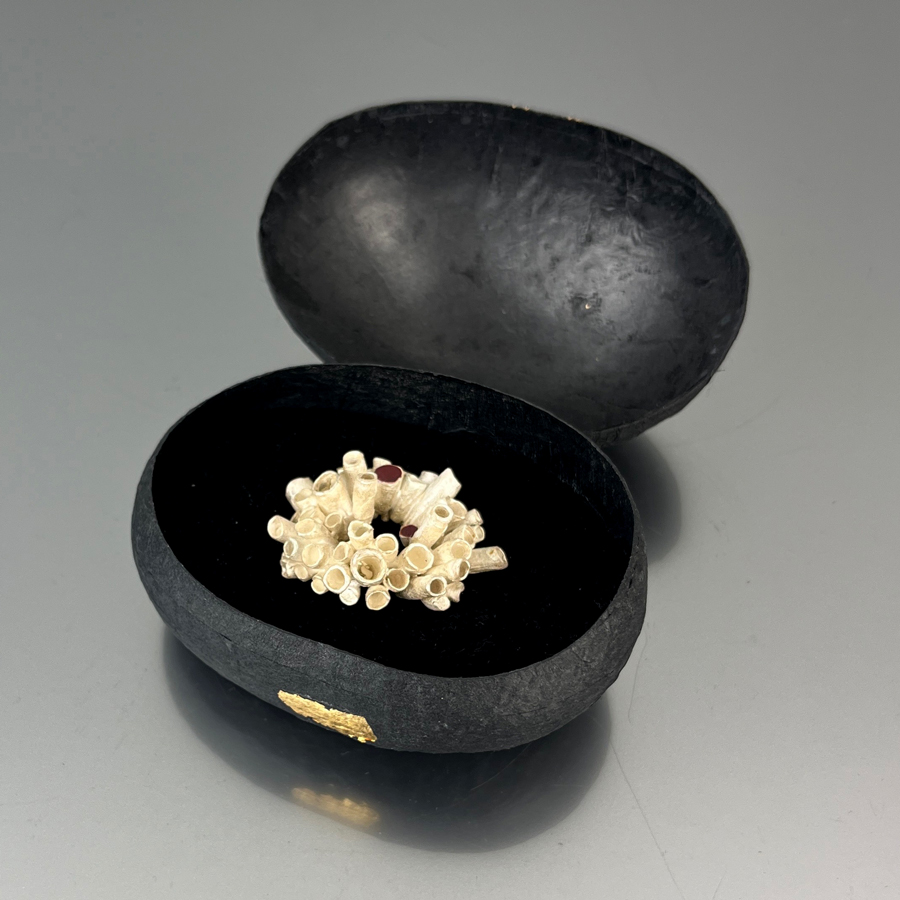 Clara Del Papa is an artist and designer of contemporary jewelry, originally from Venezuela, Architect, urban planner, interior and garden designer, she grew up and trained in the artistic and cultural environments of South America. Since the 90s she has specialized in the field of goldsmithing, finding in the goldsmith’s art a unique means of expression. Her creations are distinguished by the use of materials such as silver, gold and bronze, often combined with resins, earths and sands, reflecting her South American roots and Italian cultural influences.