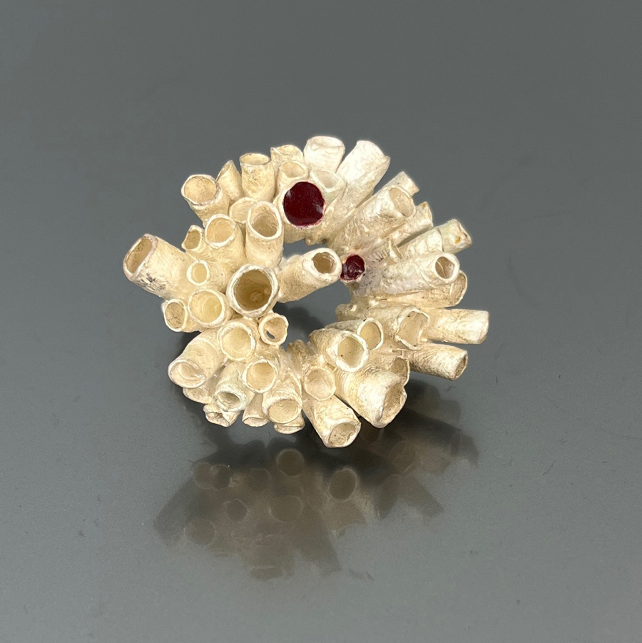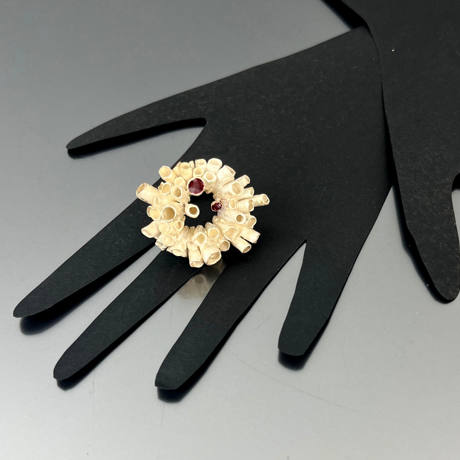 The Lola ring by Clara del Papa is a unique jewel made entirely by hand in 925 silver with patinas and red resin.