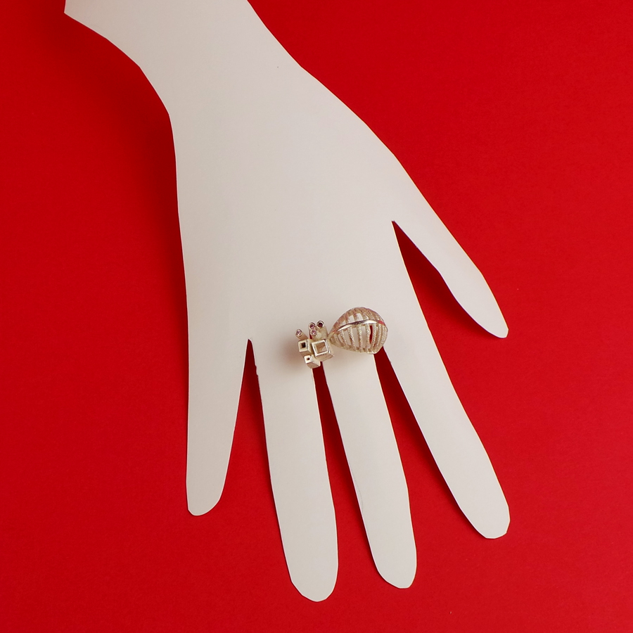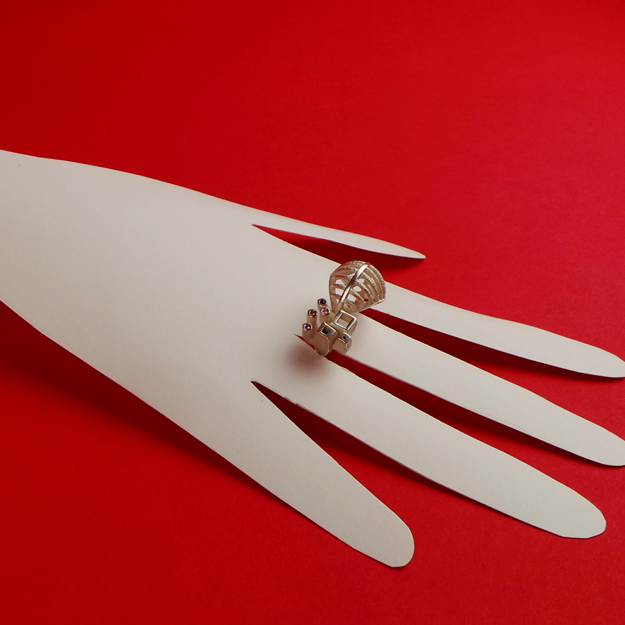 925 silver sculpture ring with a small diamond.
