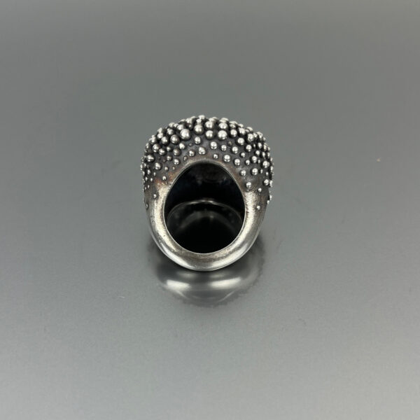 Veronica Peréz realizza pezzi unici interamente realizzati a mano, l’anello della serie Bubbles è in argento ossidato.