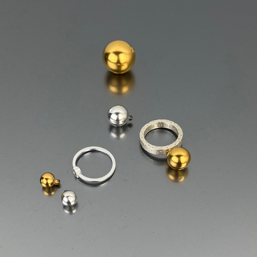 Dalla collezione dei gioielli Fruit il particolare anello minimal dotato di un piccolo foro filettato in cui si possono avvitare “Top” di diverse misure e colori.