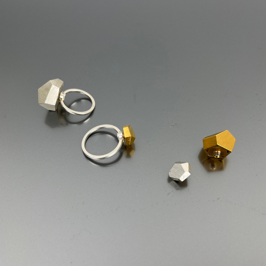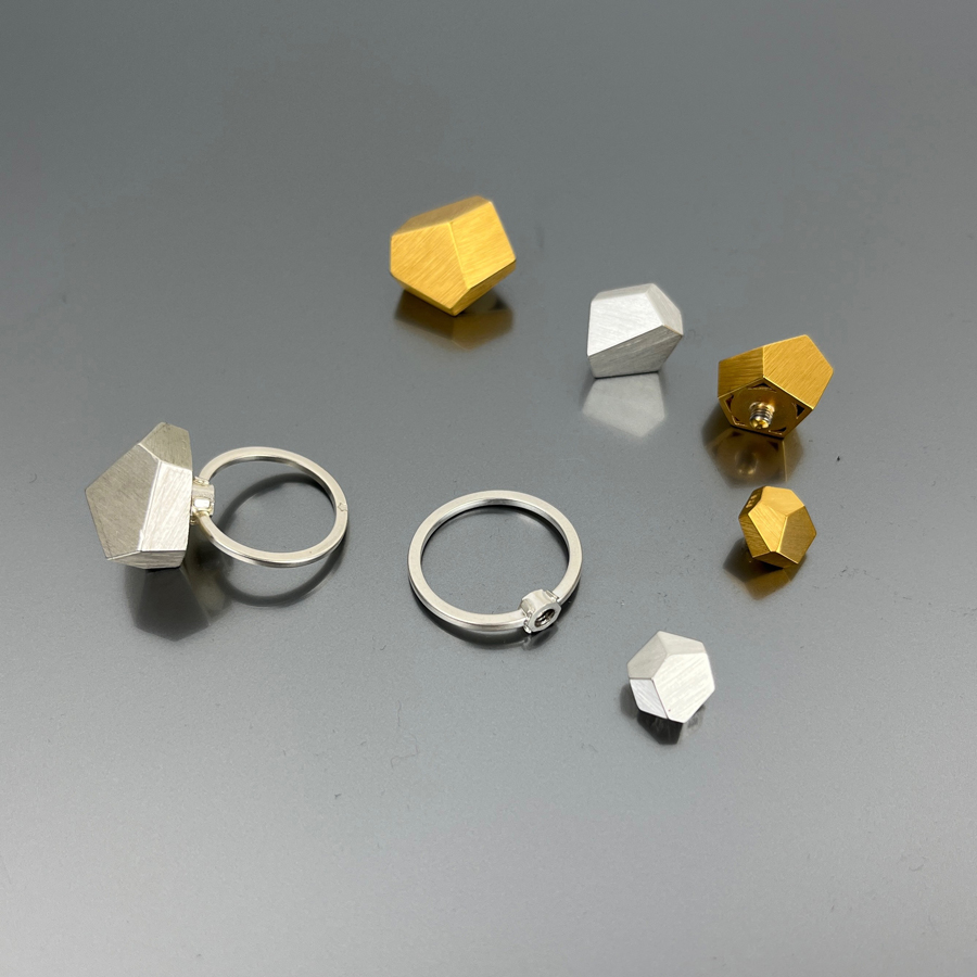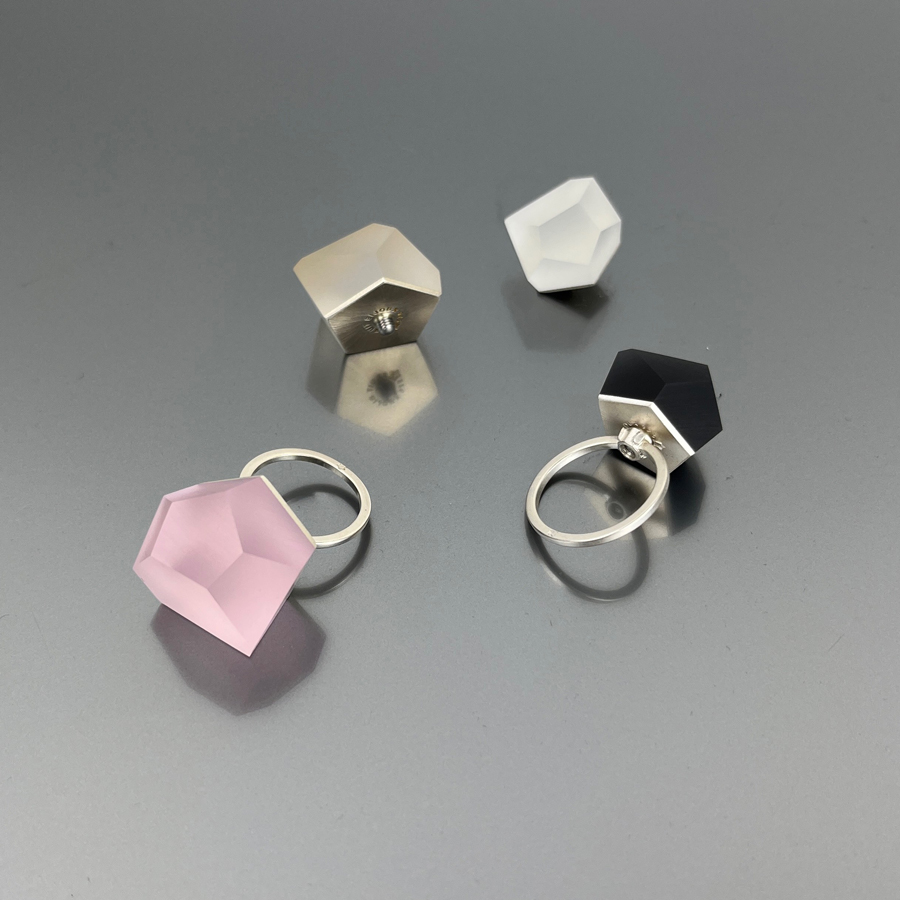 Si possono infatti scegliere sia la base dell’anello che la parte superiore. Ogni persona può creare il suo gioiello da solo, anelli in argento sterling (marchio 925) e resina epossidica, con giochi di luce e di colore che danno risultati sorprendenti, lasciando linee distinte e pulite. Si può scegliere fra centinaia di moduli in una varietà di colori e forme, che possono essere facilmente composti, modificati e ampliati.