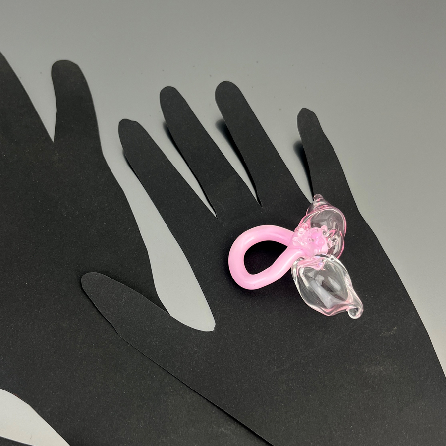Anello dalle forme organiche, una scultura da indossare, realizzato interamente a mano in vetro borosilicato.