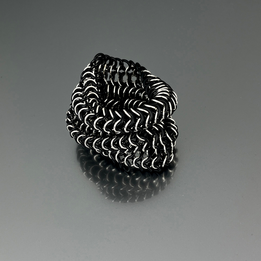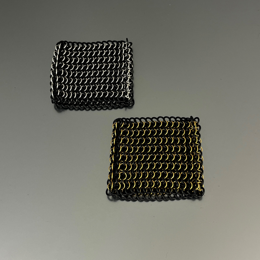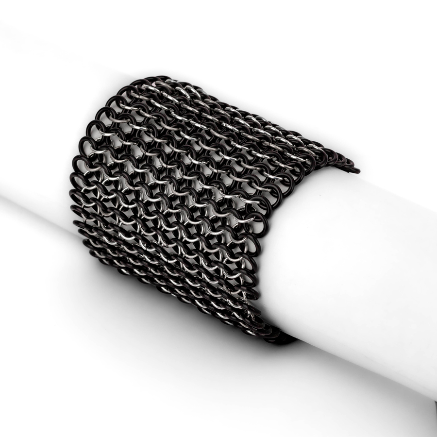 Gli anelli sono intrecciati a mano; il risultato è una maglia resistente che non perde elasticità nel tempo morbida e confortevole.
