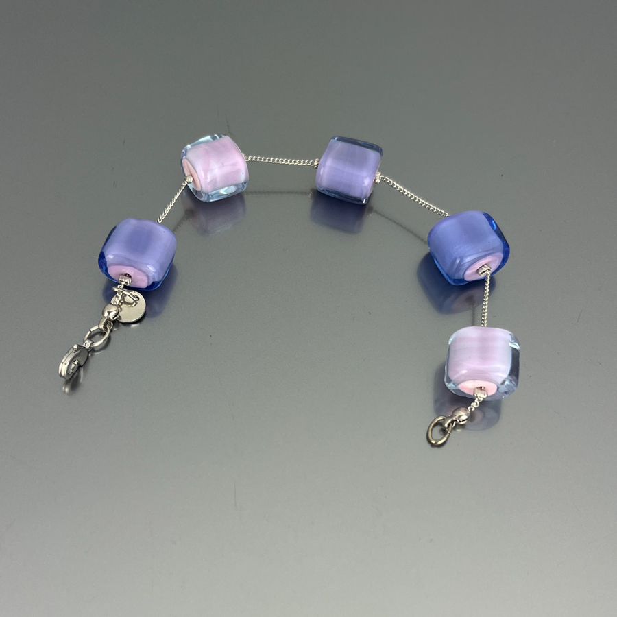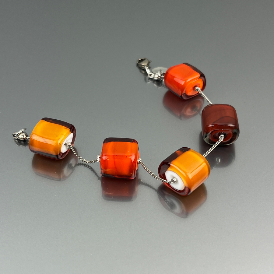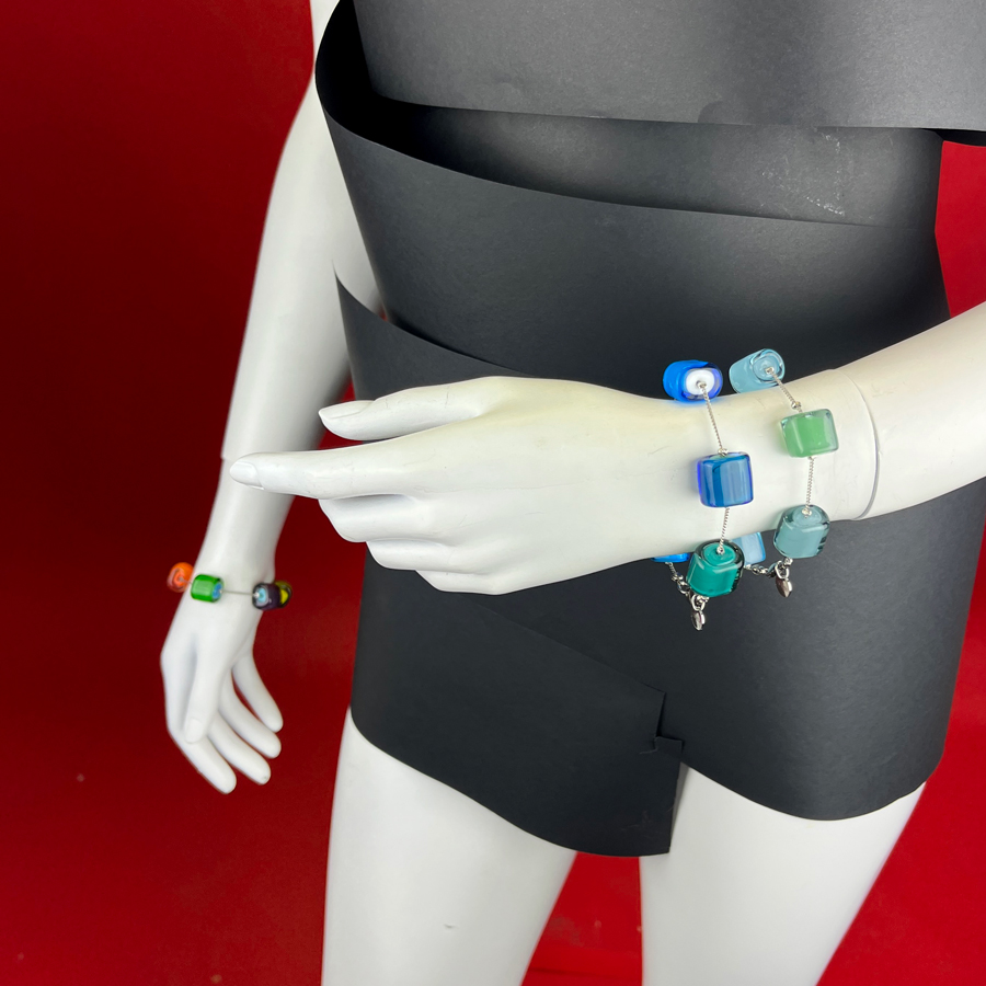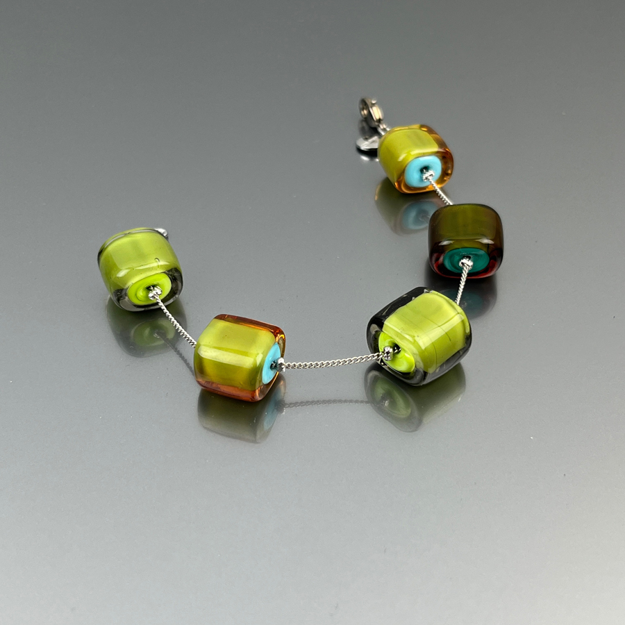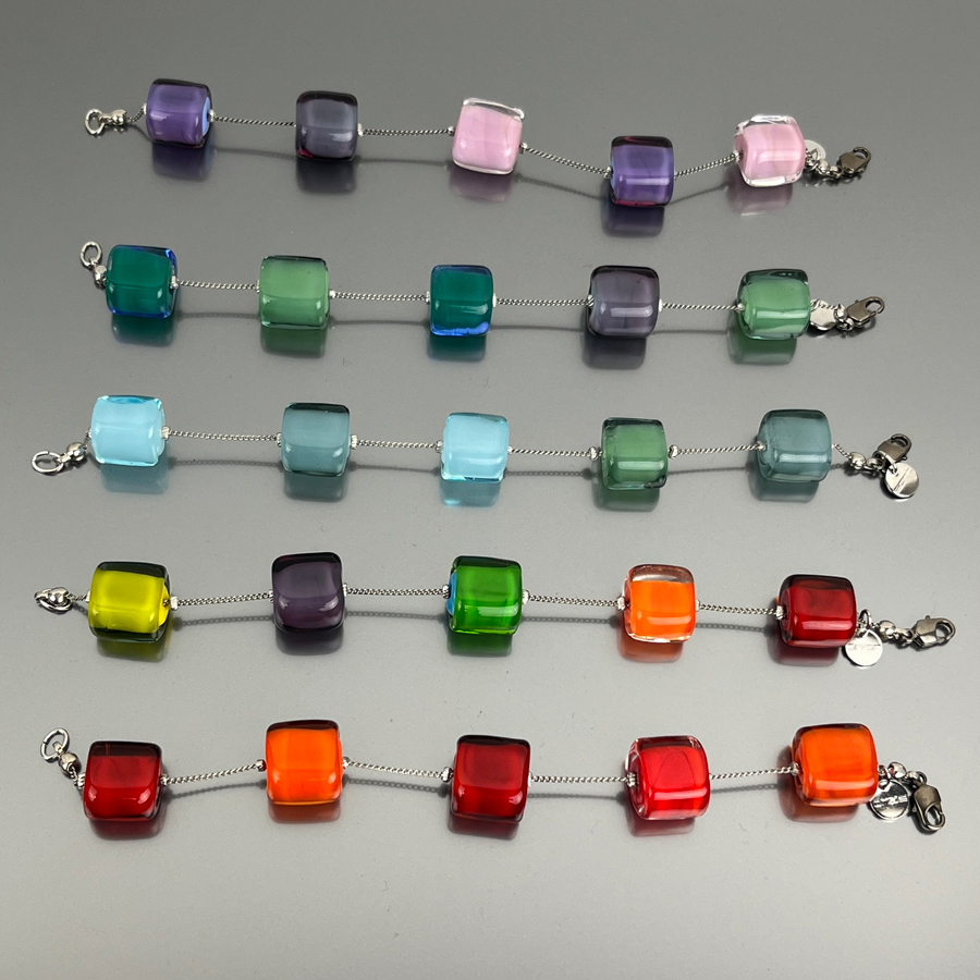 Le perle sono realizzate con la tradizionale tecnica del vetro a lume a Murano nel laboratorio di Marina e Susanna Sent.