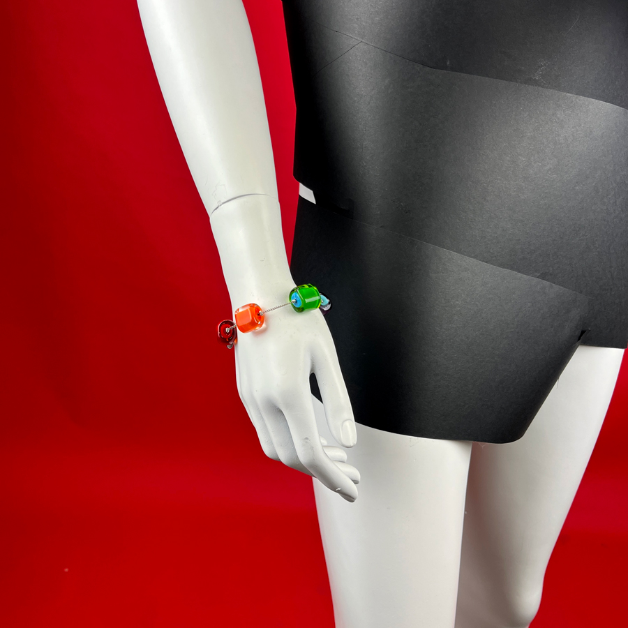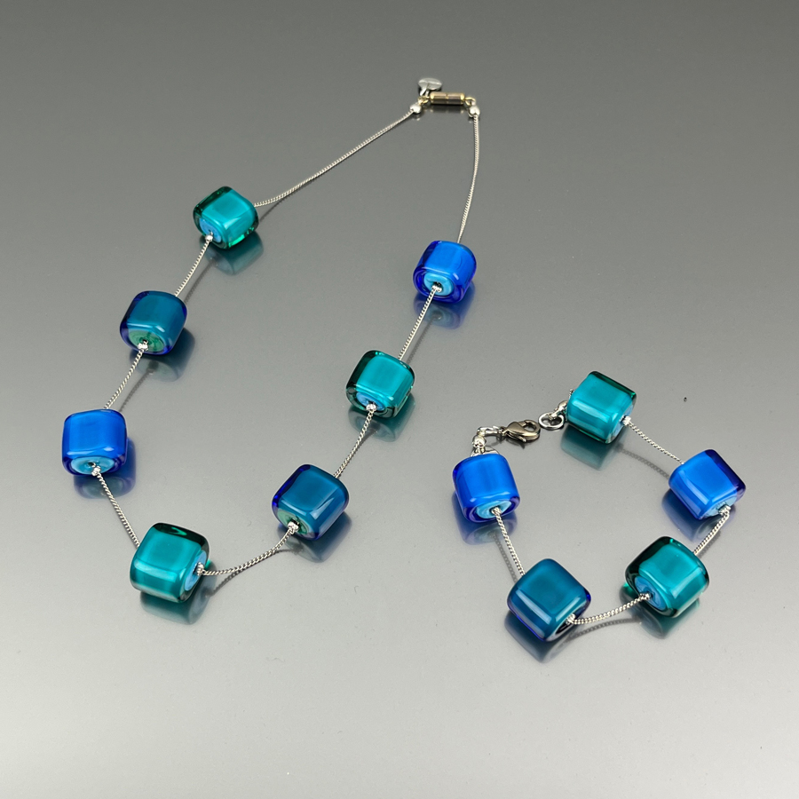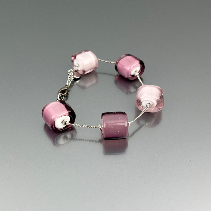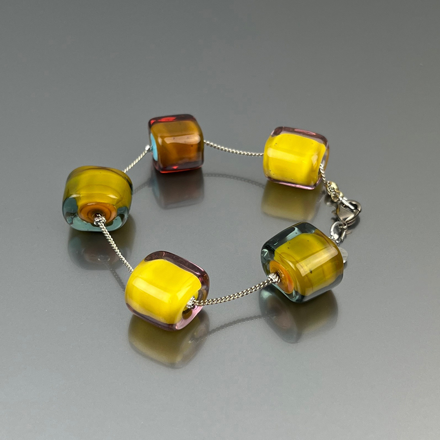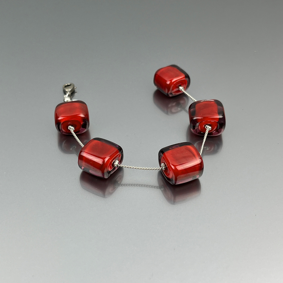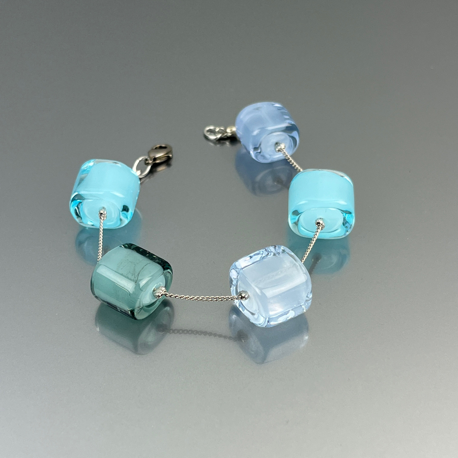 Le perle sono realizzate con la tradizionale tecnica del vetro a lume a Murano nel laboratorio di Marina e Susanna Sent.