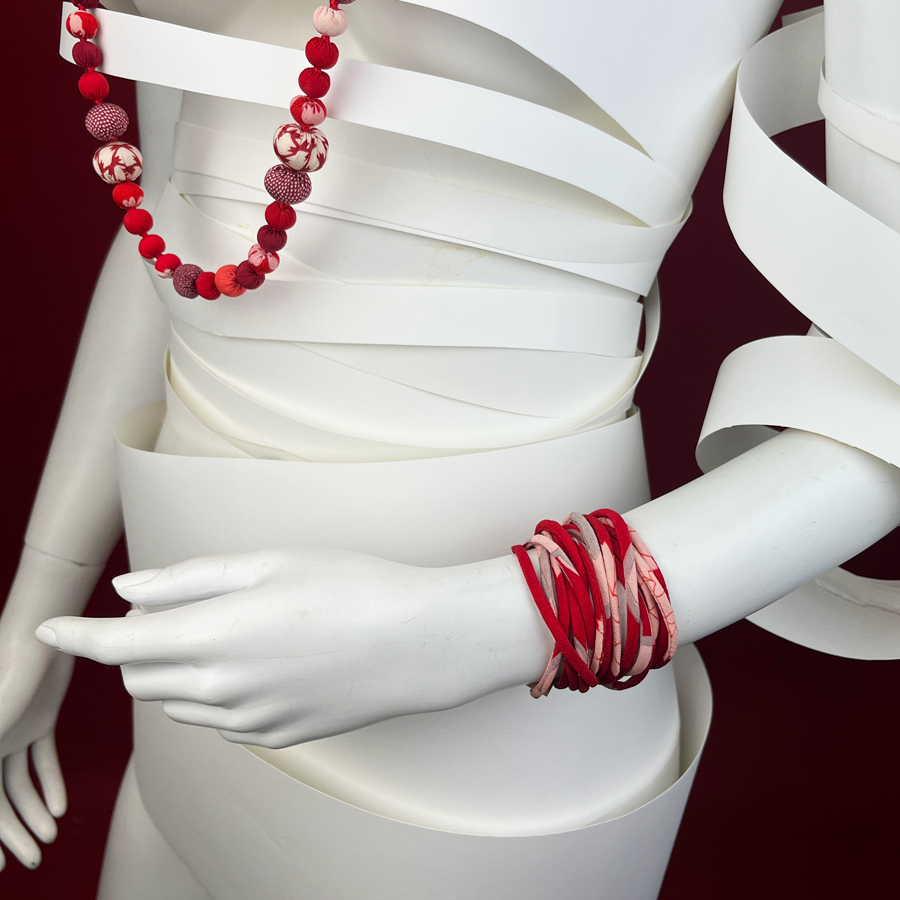 Gioiello tessile realizzato utilizzando parti di kimono giapponesi vintage originali, noti in tutto il mondo per la loro lavorazione di alta qualità e il design originale.