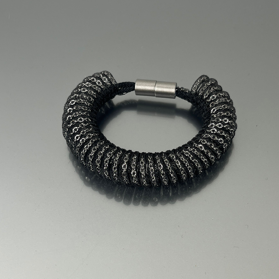 Bracciale in rete di nylon con all’interno una catenina in acciaio dorato o argentato,