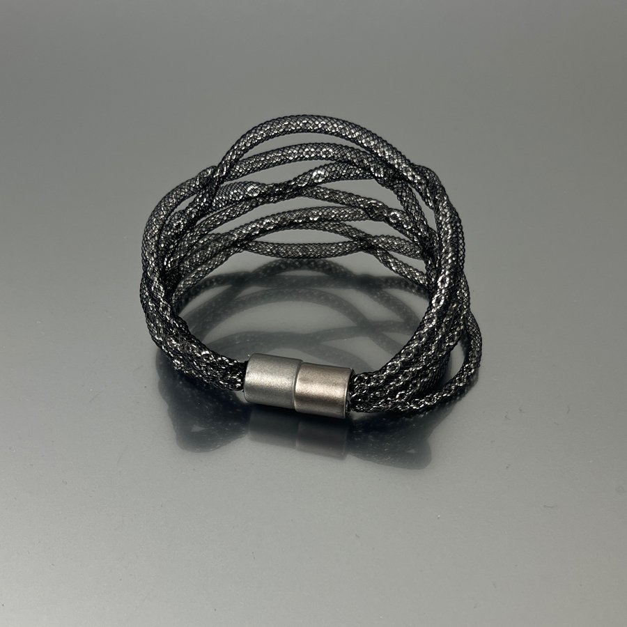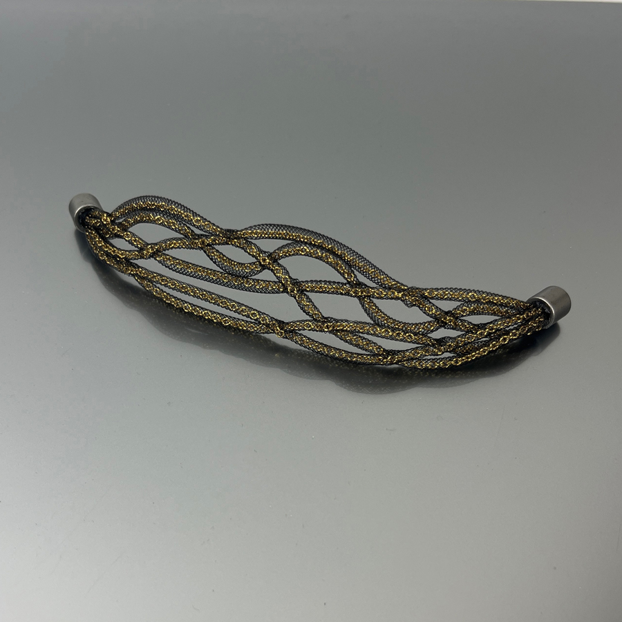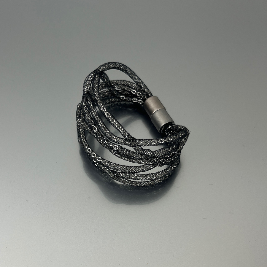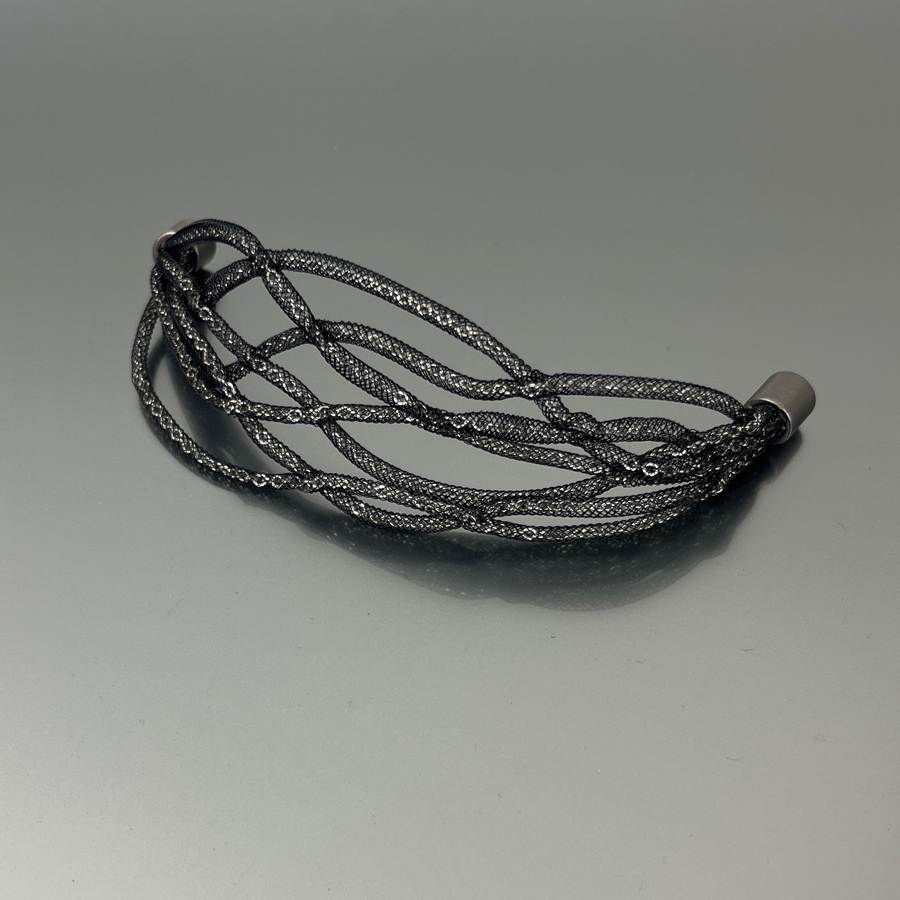 Bracciale in rete di nylon con all’interno una catenina in acciaio dorato o argentato,