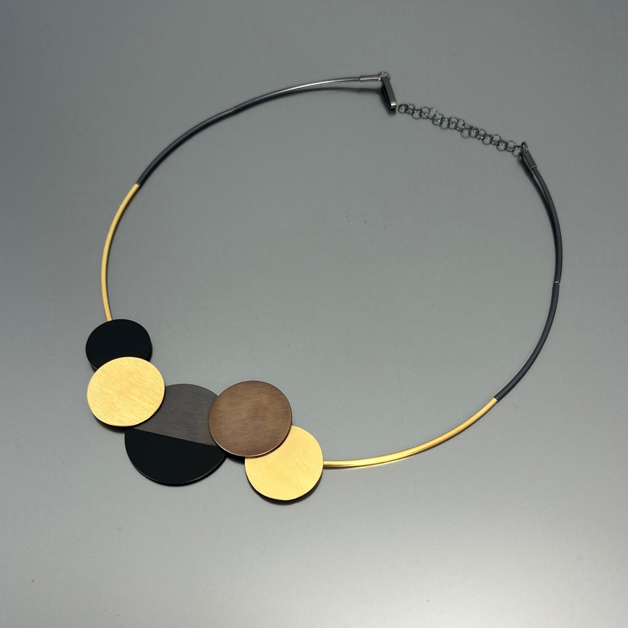 Elegante girocollo in argento placcato oro e argento ossidato.